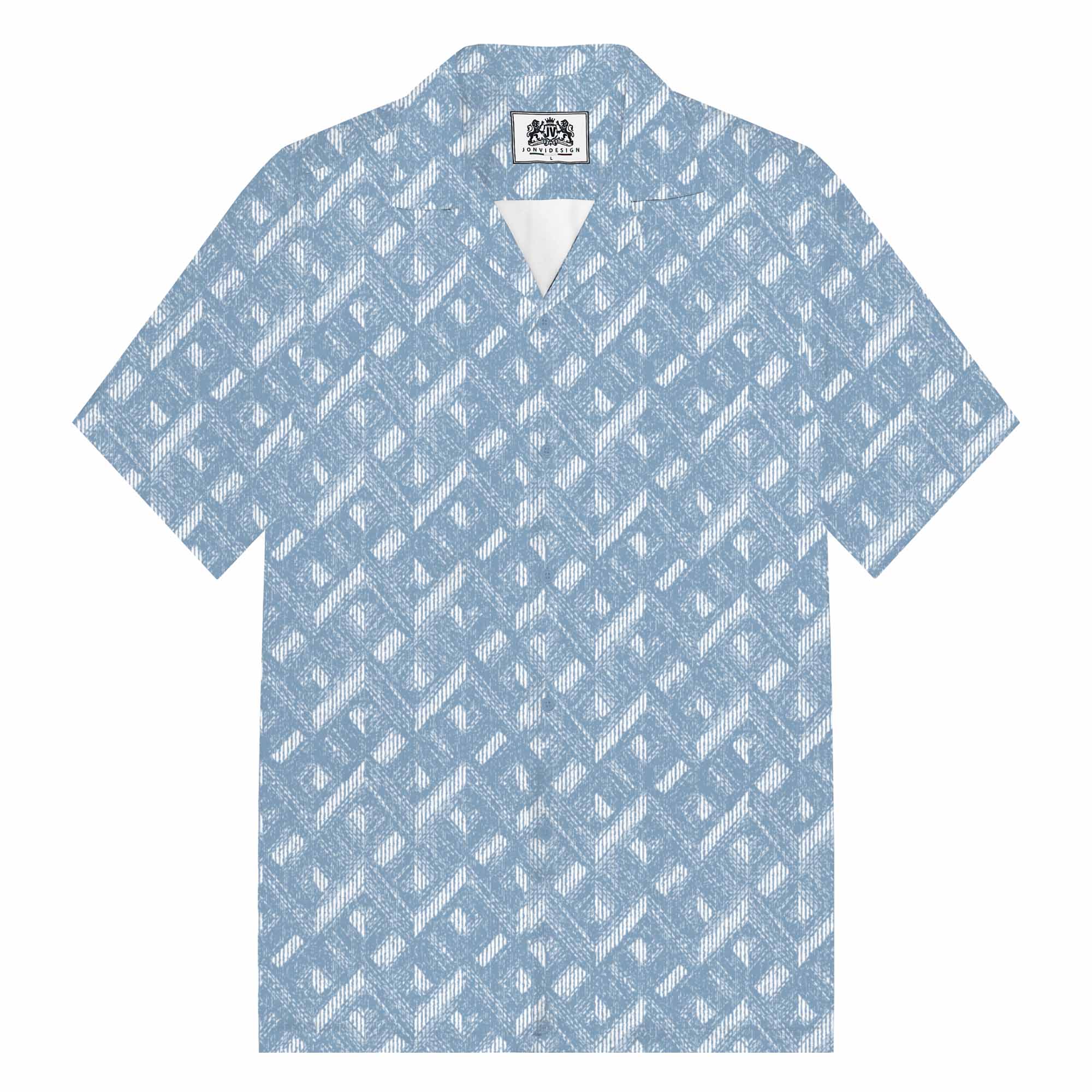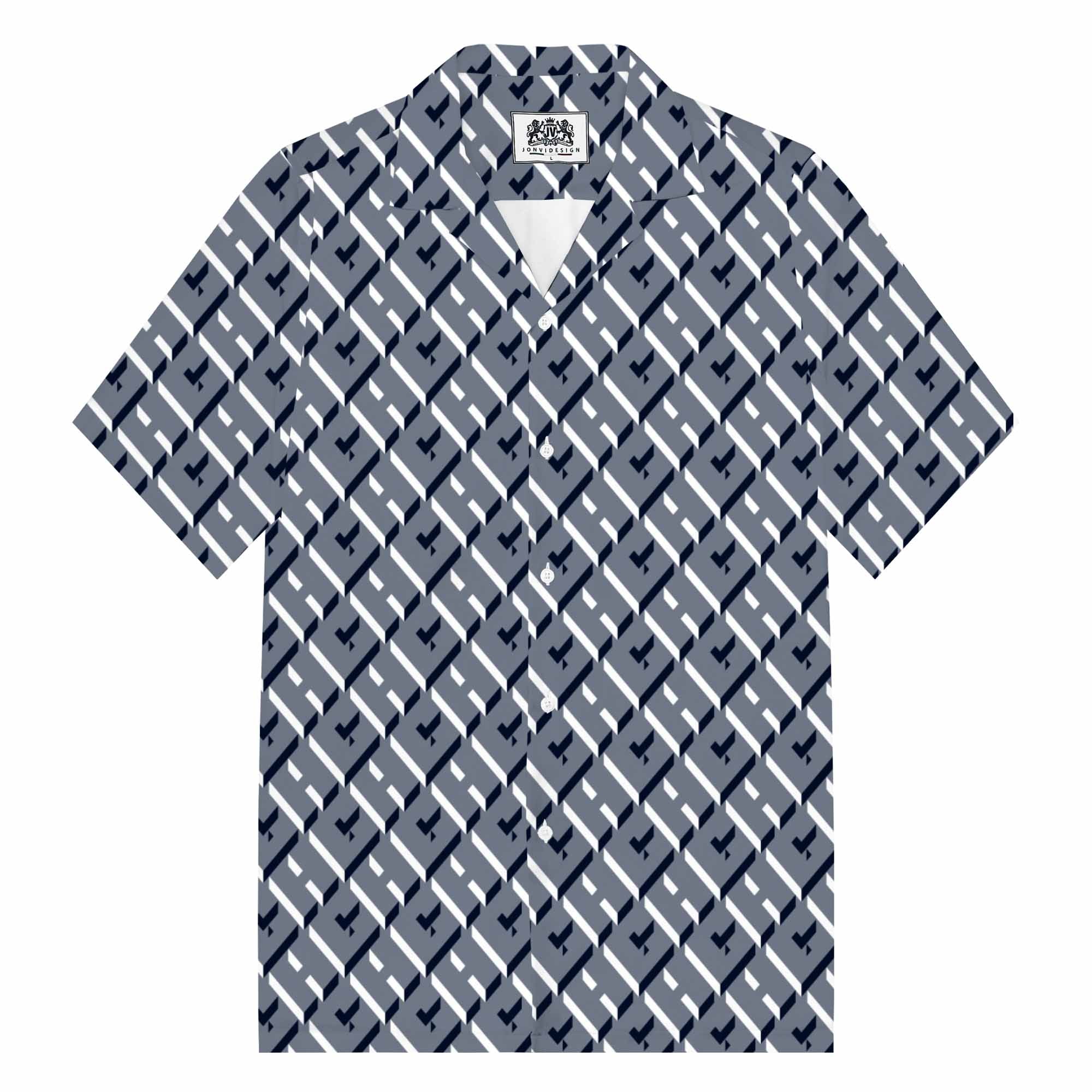 Geometric Square Block Pattern Camp Collar Short Sleeve Shirt$43.99 USD$69.00 USD
