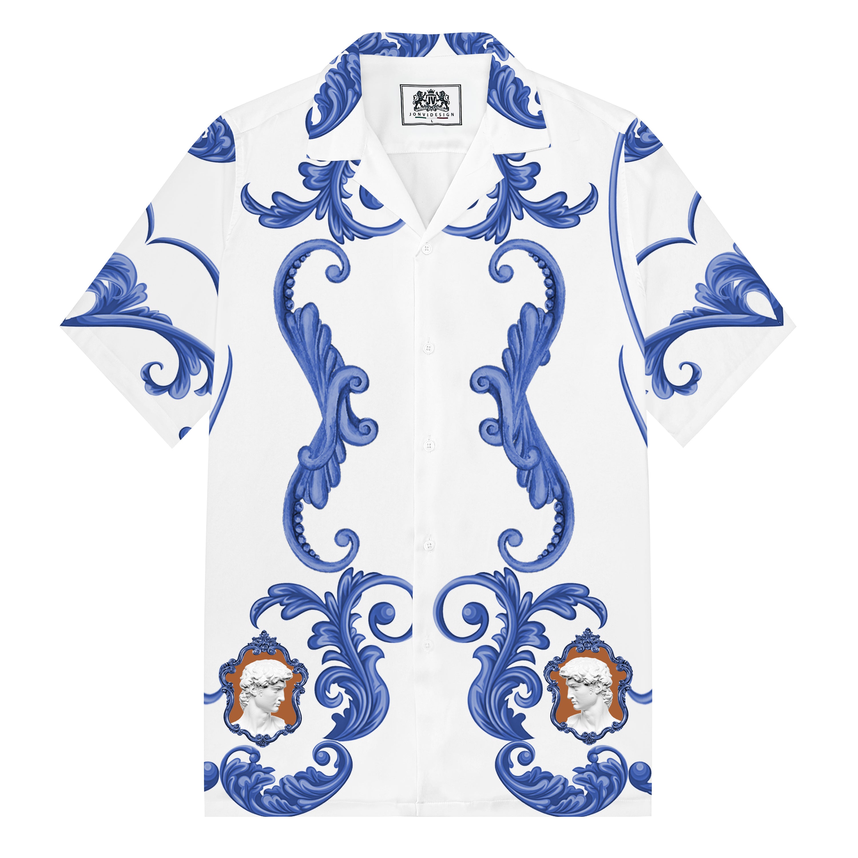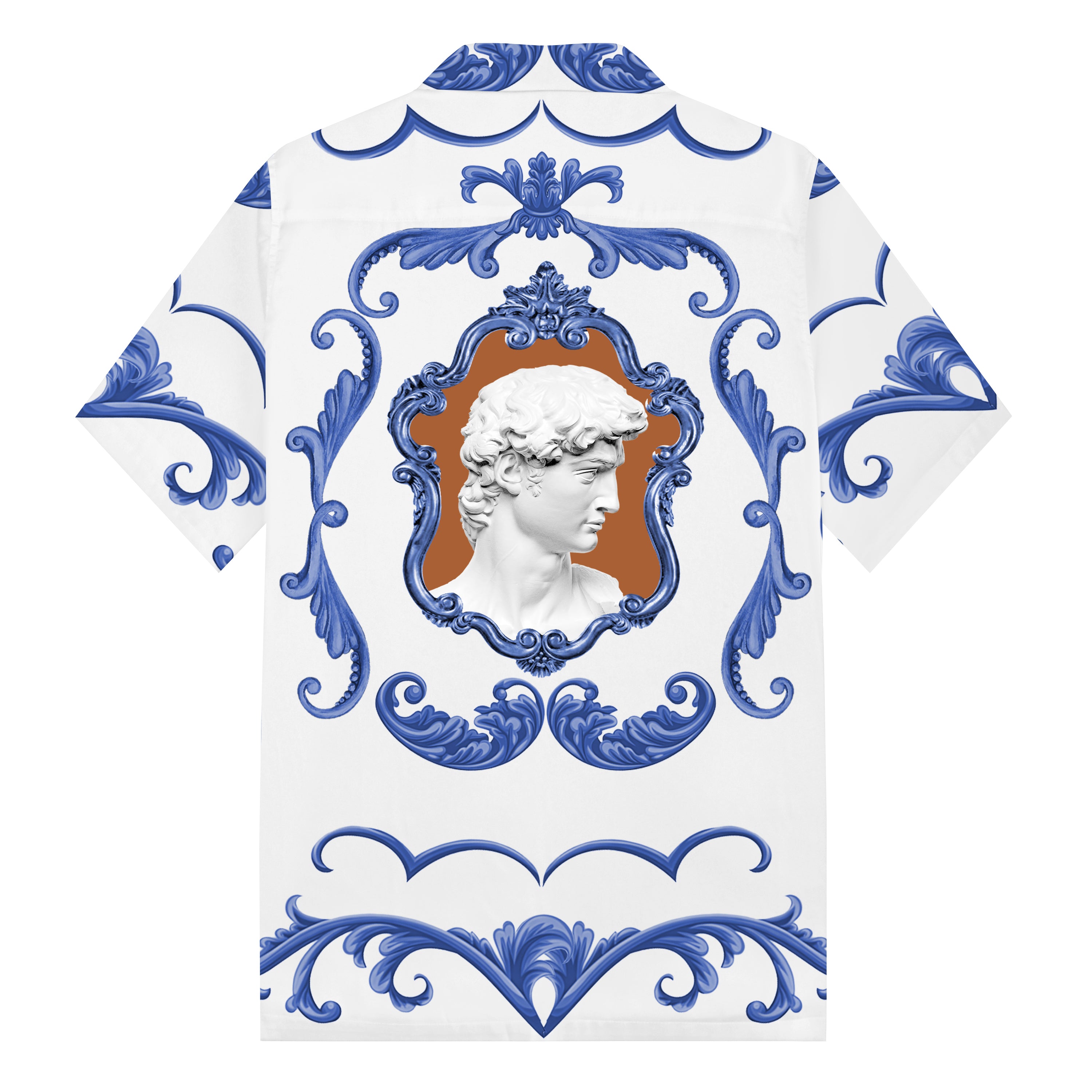 Statue Of David Baroque Floral Pattern Camp Collar Short Sleeve Shirt$43.99 USD$69.00 USD