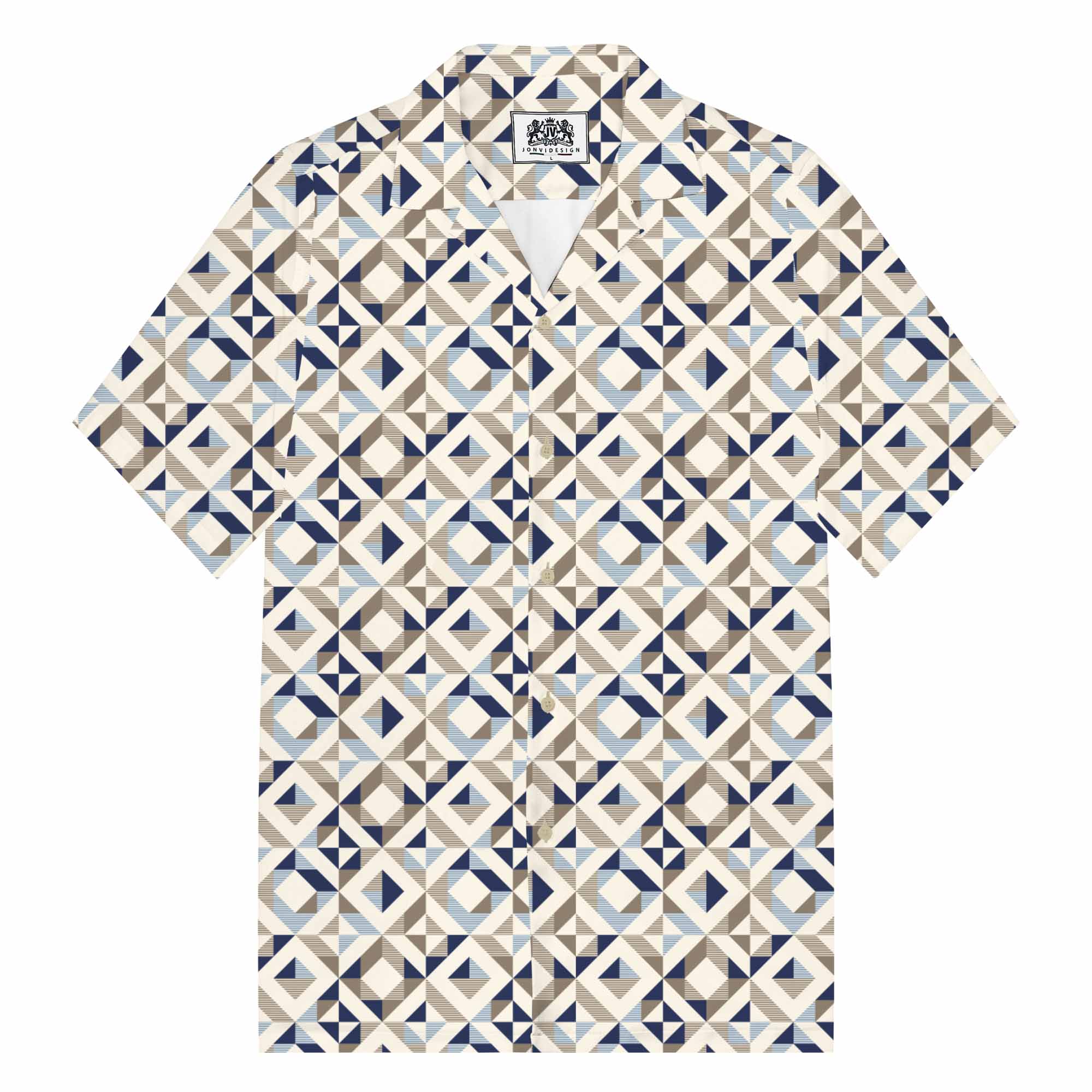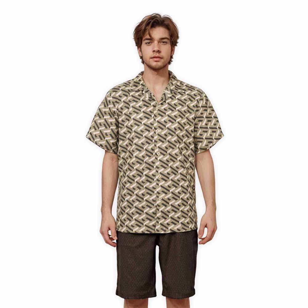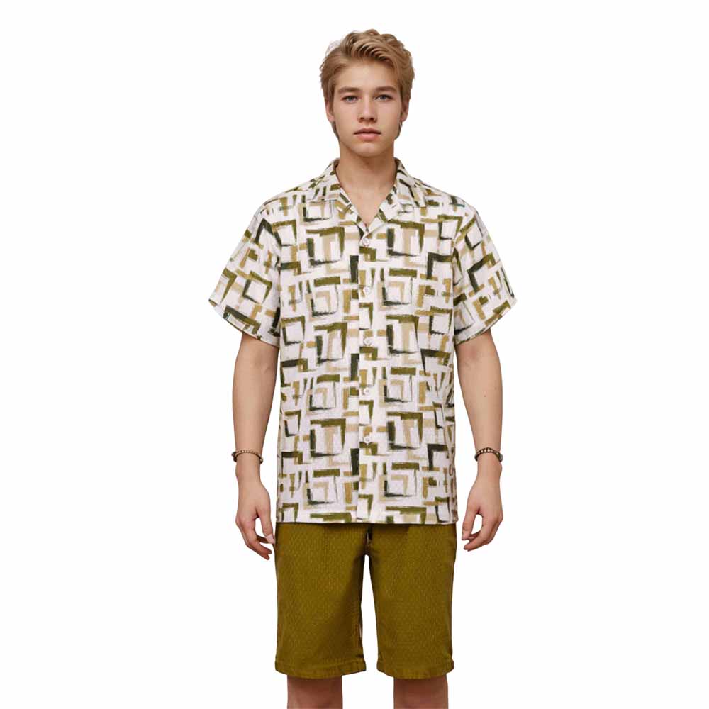 Geometric Square Print Camp Collar Short-Sleeved Shirt$43.99 USD$69.00 USD