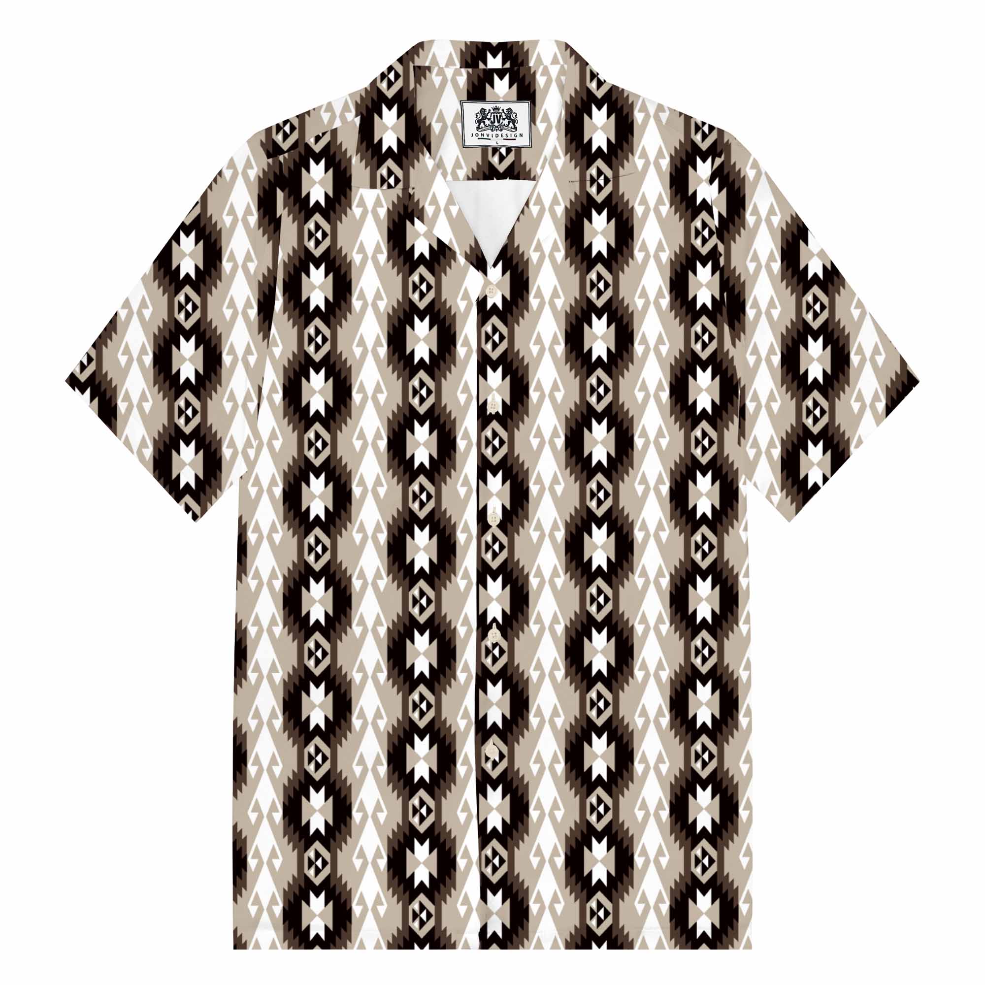 Light Brown On White Polynesian Camp Collar Short Sleeve Shirt$43.99 USD$69.00 USD