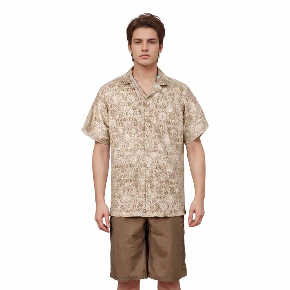 Natural Patterned Resort Camp Collar Short Sleeve Shirt$43.99 USD$69.00 USD