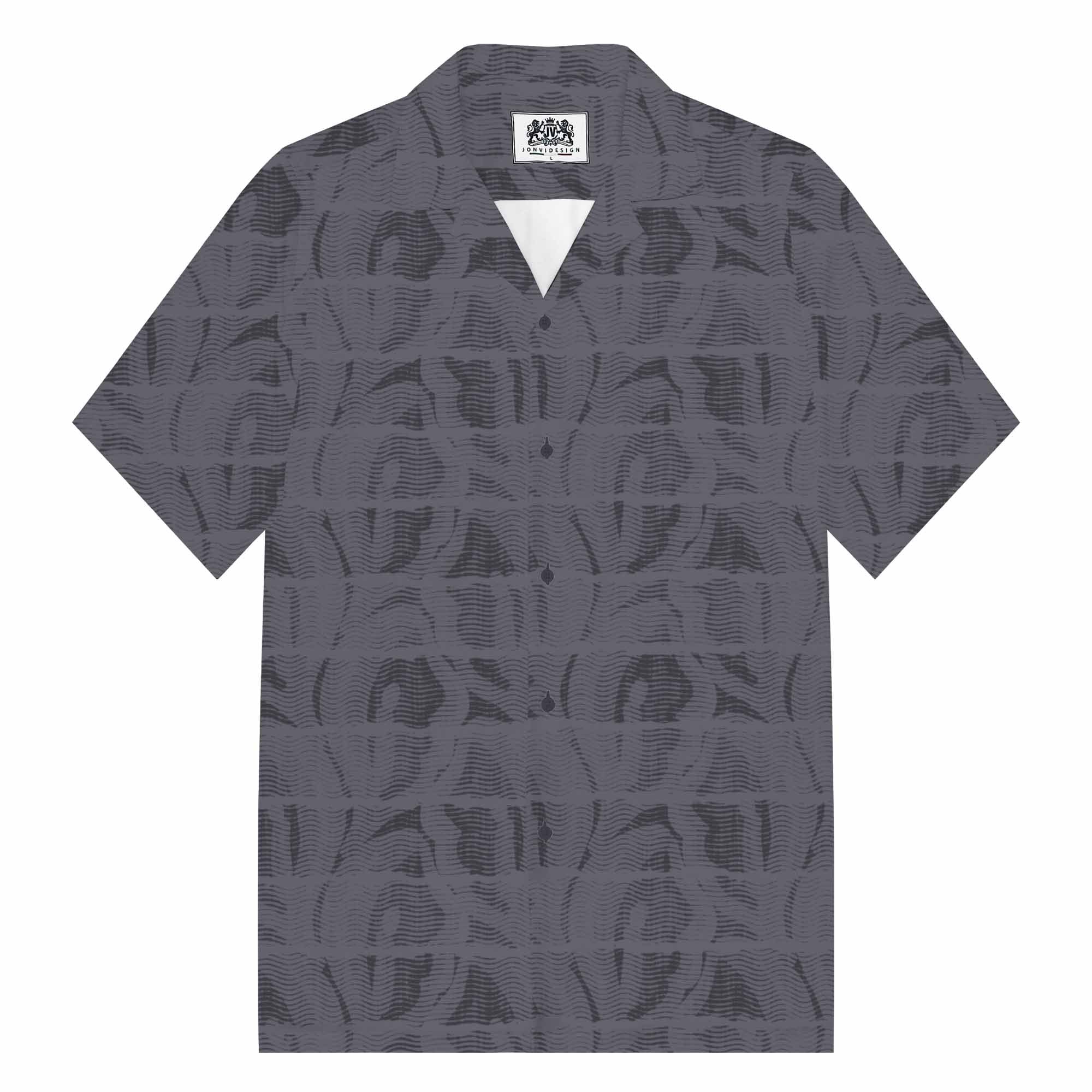 Gray Leaf Print Camp Collar Short Sleeve Shirt$43.99 USD$69.00 USD
