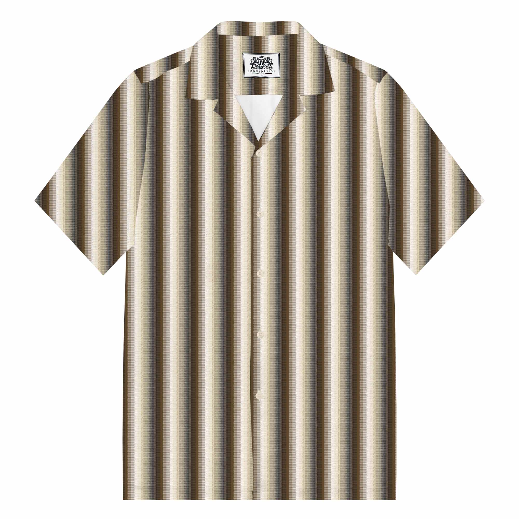 Brown Vertical Striped Casual Camp Collar Short-Sleeved Shirt$43.99 USD$69.00 USD