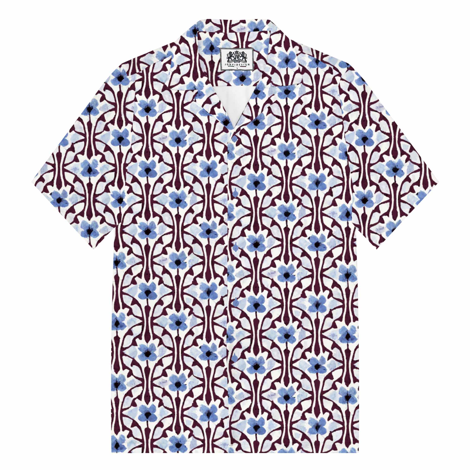 Blue Flowers Camp Collar Short-Sleeved Shirt$43.99 USD$69.00 USD