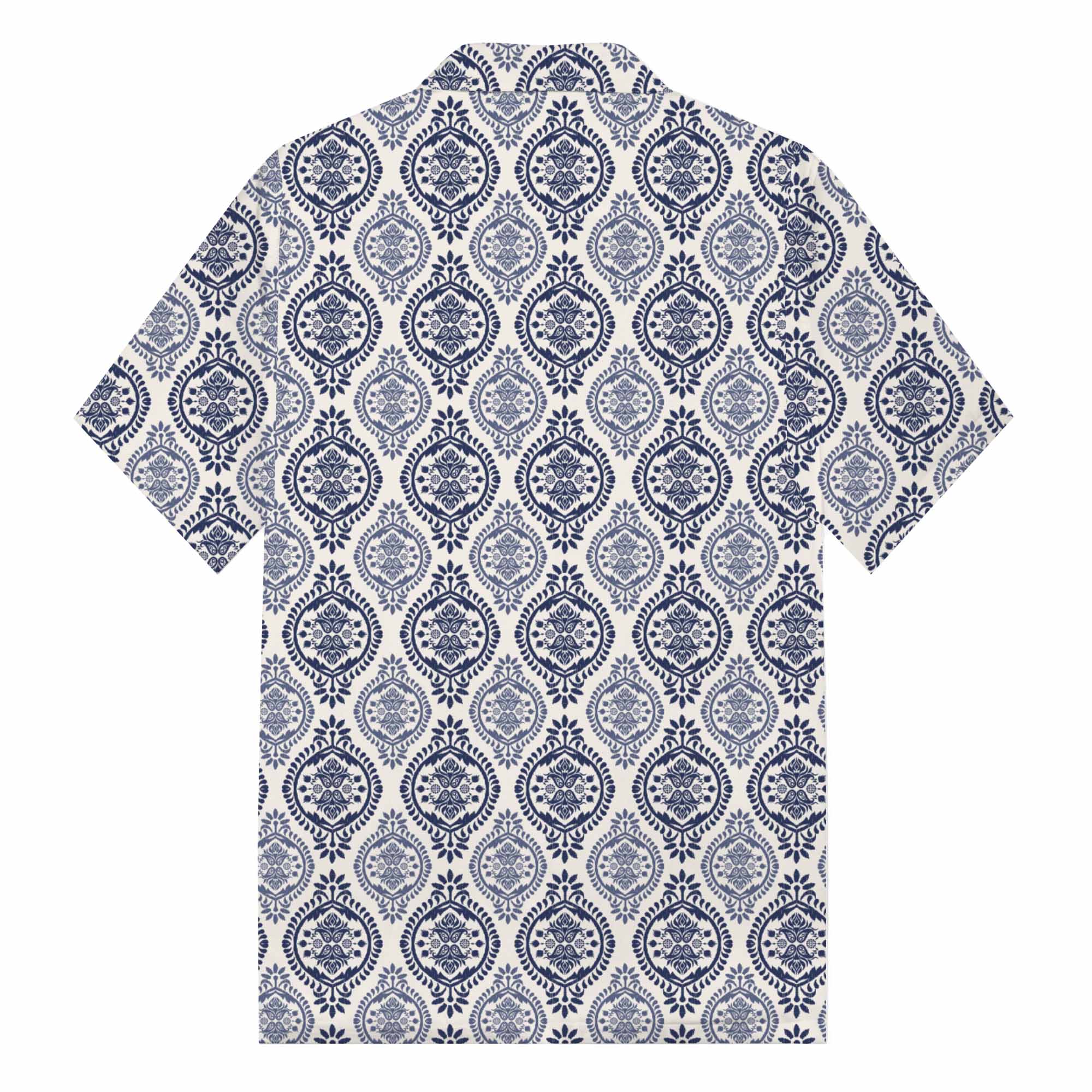 Blue And White Porcelain Pattern Camp Collar Short-Sleeved Shirt$43.99 USD$69.00 USD