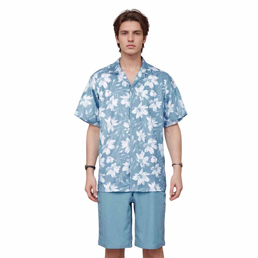 Hawaiian Shirt Blue White Floral Camp Collar Short Sleeve Shirt$43.99 USD$69.00 USD