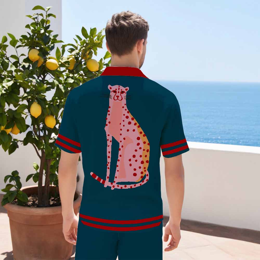 Pink Leopard Print Camp Collar Short Sleeve Shirt$43.99 USD$69.00 USD