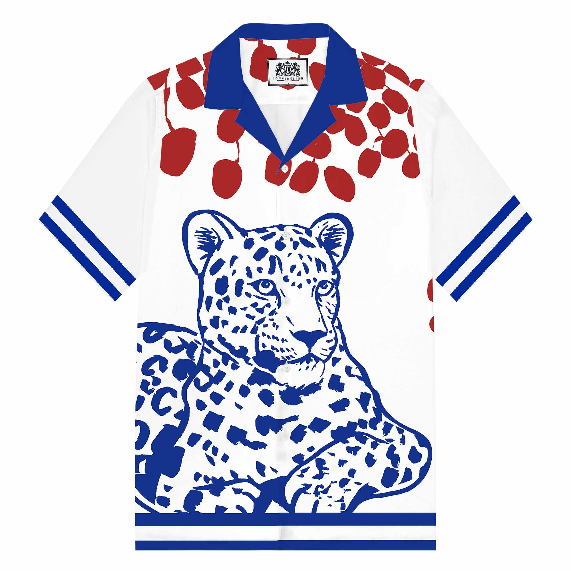 Blue Leopard Print Camp Collar Short Sleeve Shirt$43.99 USD$69.00 USD