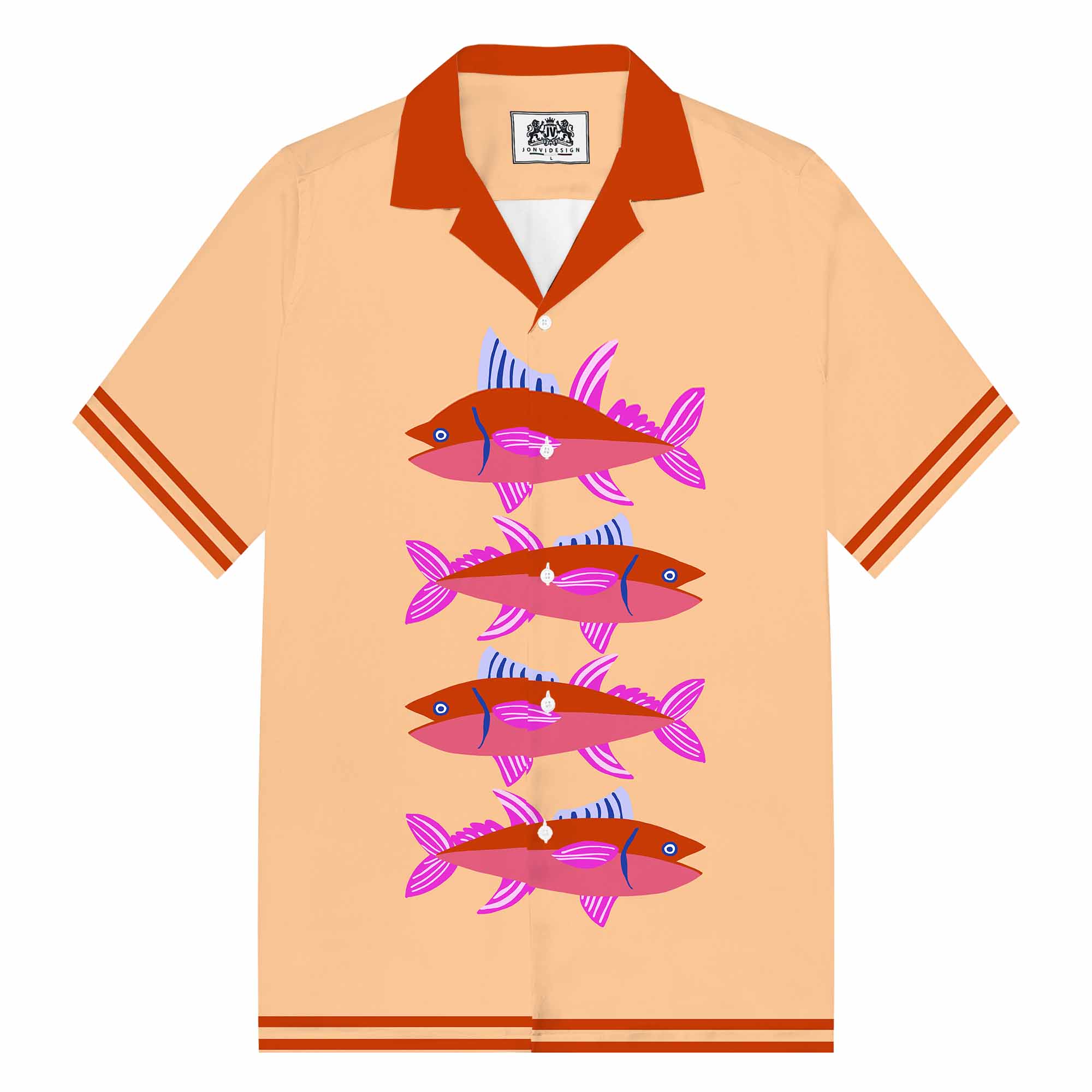Color-Blocked Fish Pattern Camp Collar Short Sleeve Shirt$43.99 USD$69.00 USD