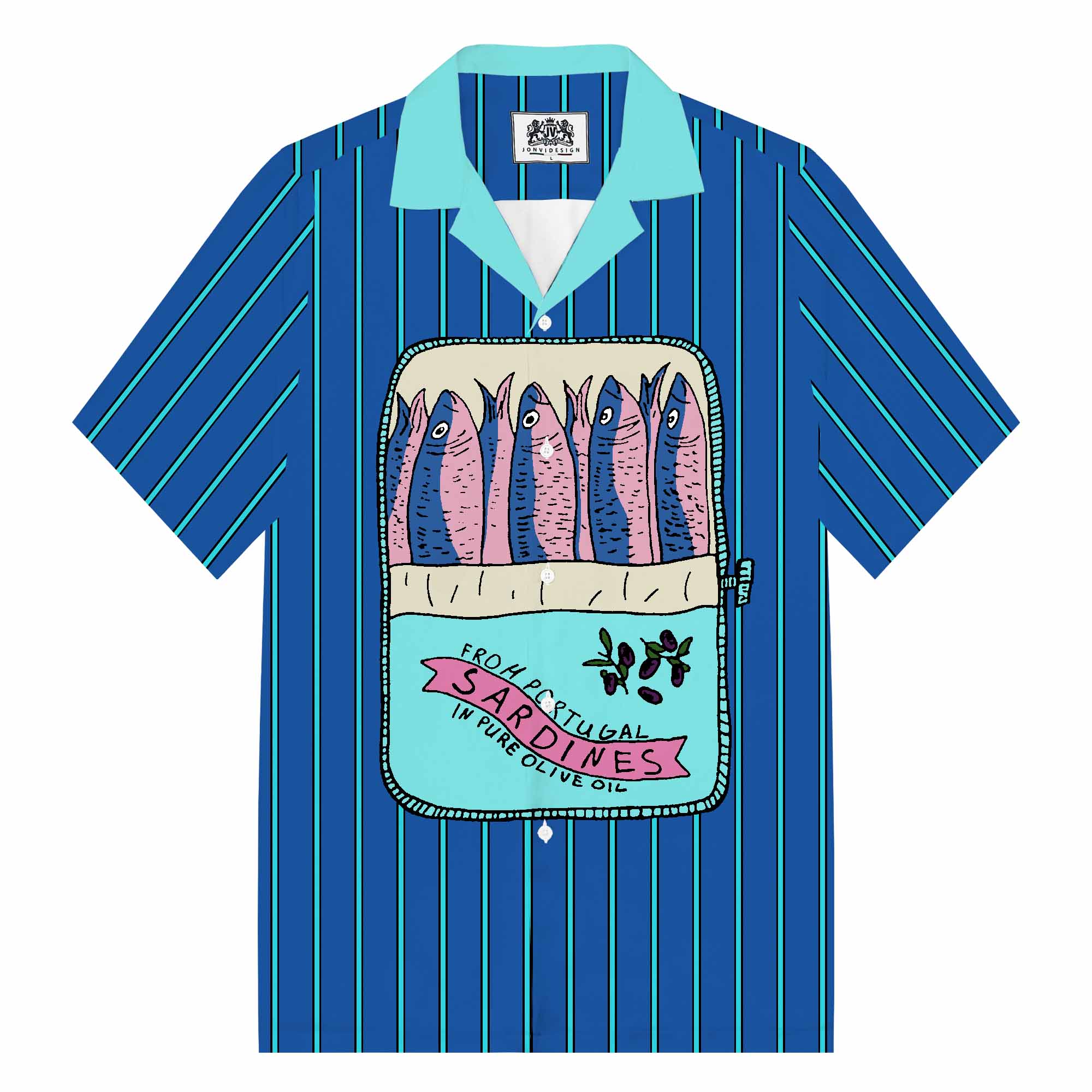 Blue Striped Vintage Sardines Short Sleeve Shirt$43.99 USD$69.00 USD