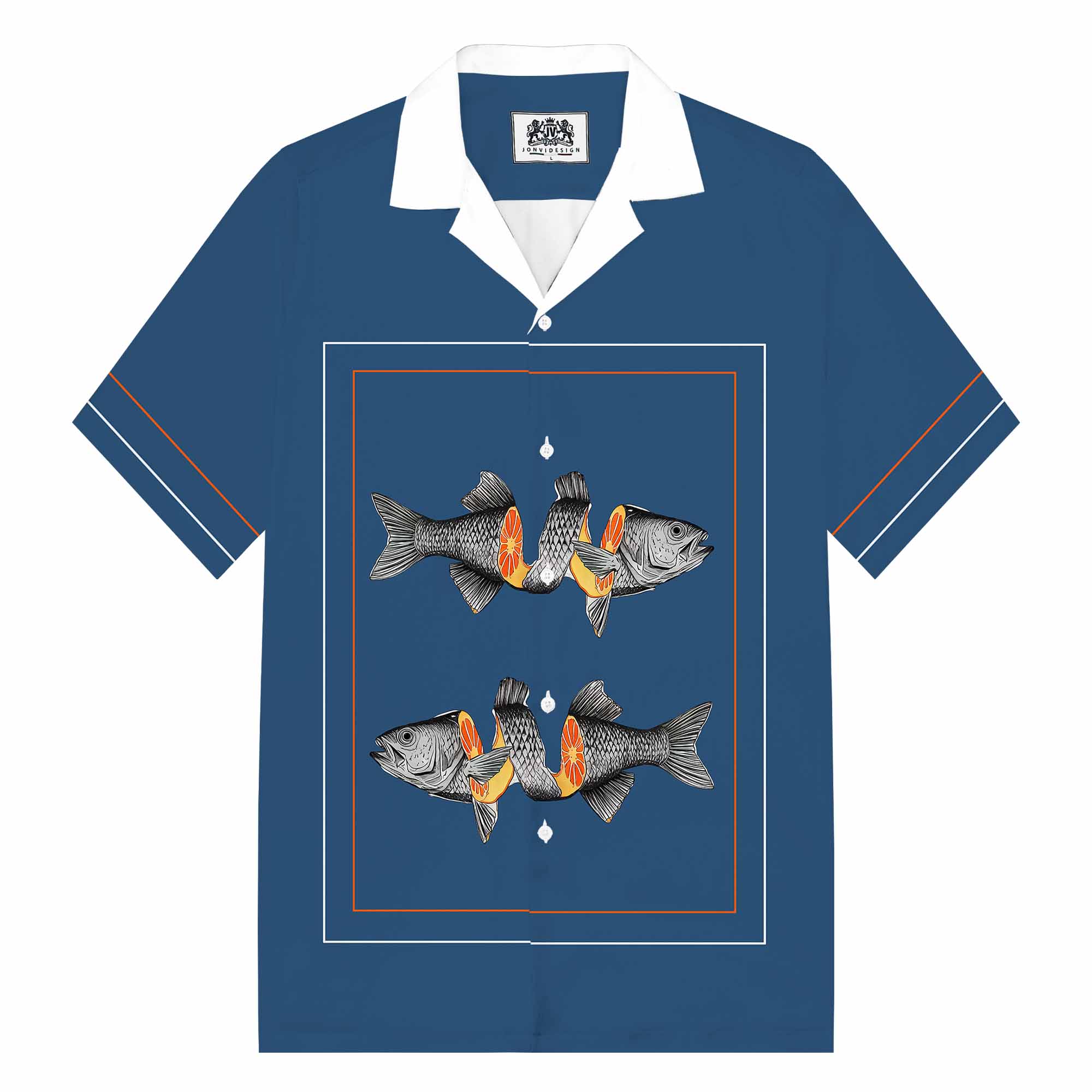 Colorful Fish Print Camp Collar Short-Sleeved Shirt$43.99 USD$69.00 USD