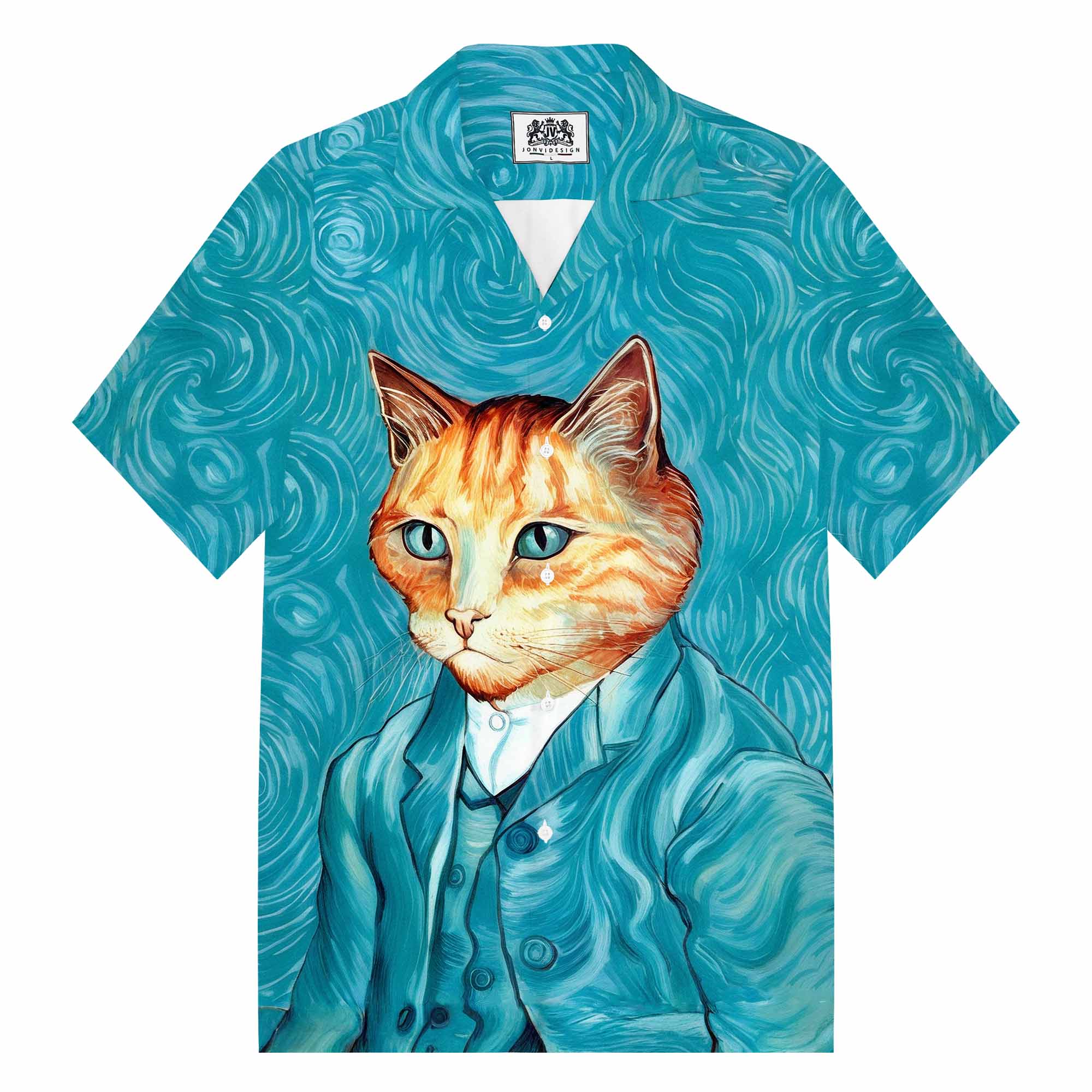 Cat Van Gogh Portrait Print Camp Collar Short-Sleeved Shirt$43.99 USD$69.00 USD