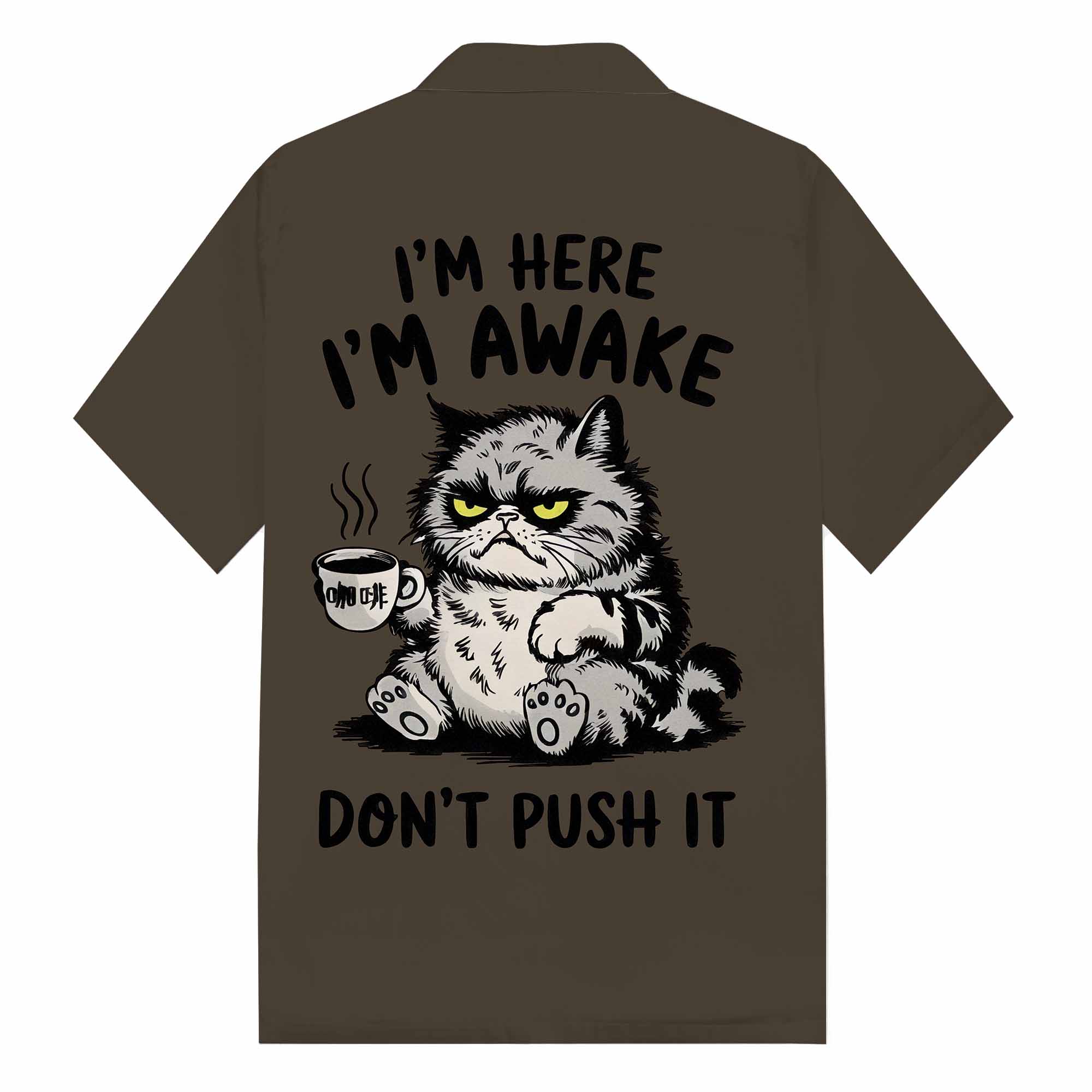 Funny Cat And Coffee Im Here Im Awake Print Camp Collar Short-Sleeved Shirt$43.99 USD$69.00 USD