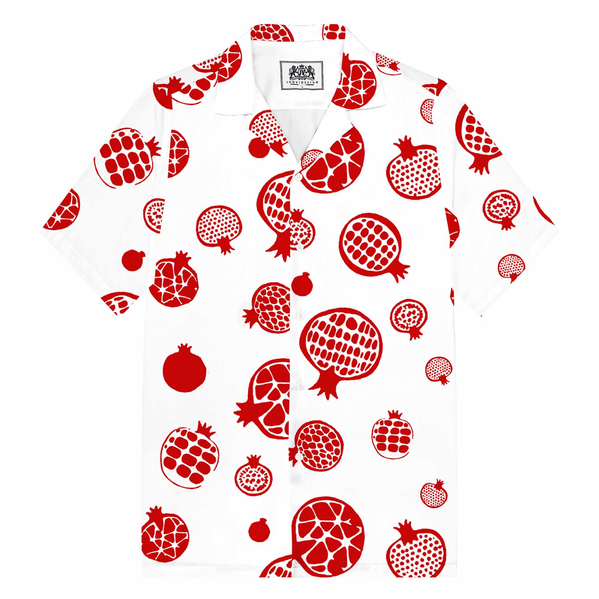 Red Pomegranate Print Pattern Camp Collar Short Sleeve Shirt$43.99 USD$69.00 USD