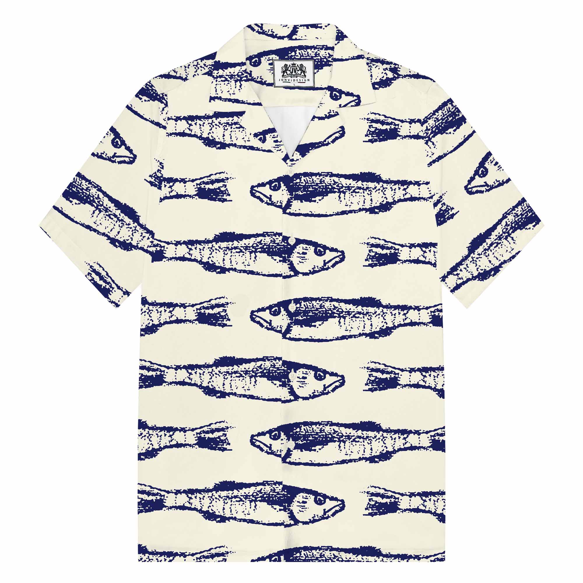 Retro Holiday Themed Fish Print Camp Collar Short-Sleeved Shirt$43.99 USD$69.00 USD