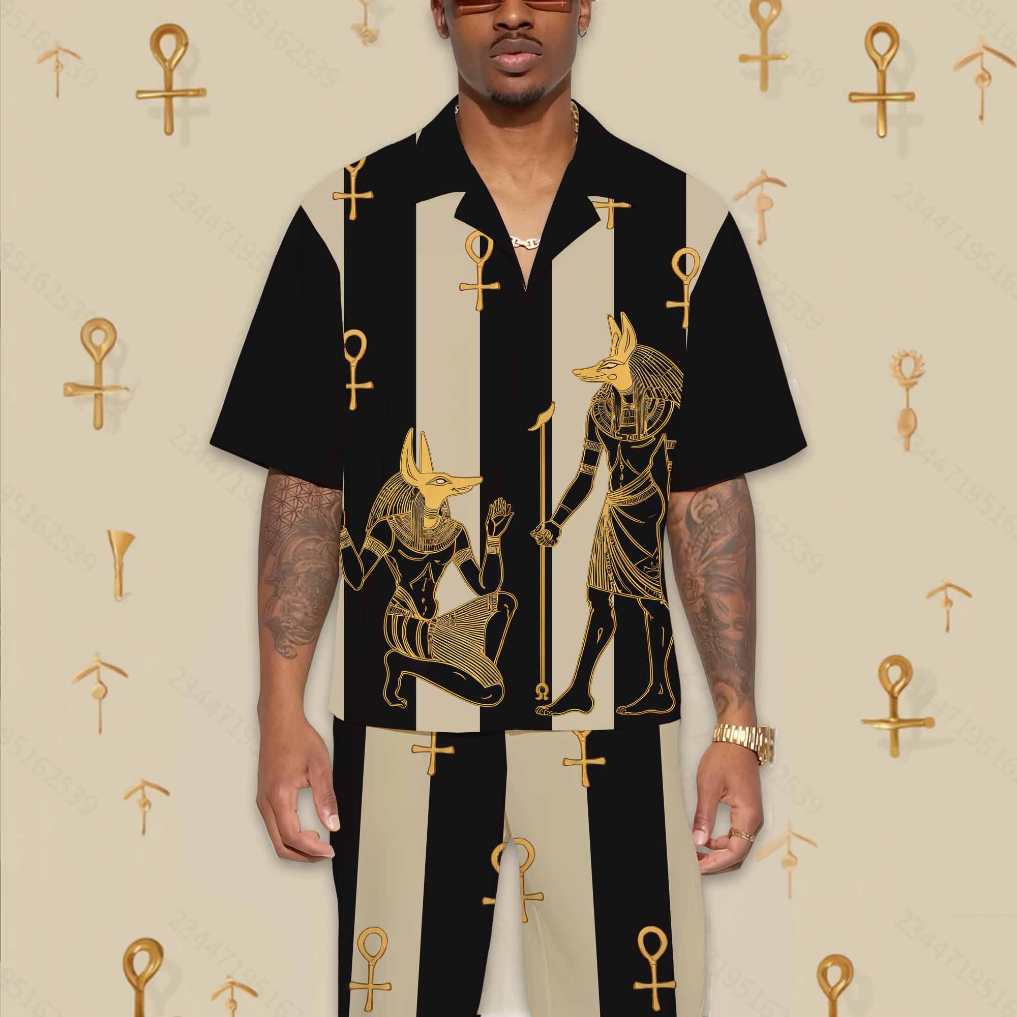 Ancient Egyptian Anubis Art Camp Collar Short Sleeve Shirt$43.99 USD$69.00 USD