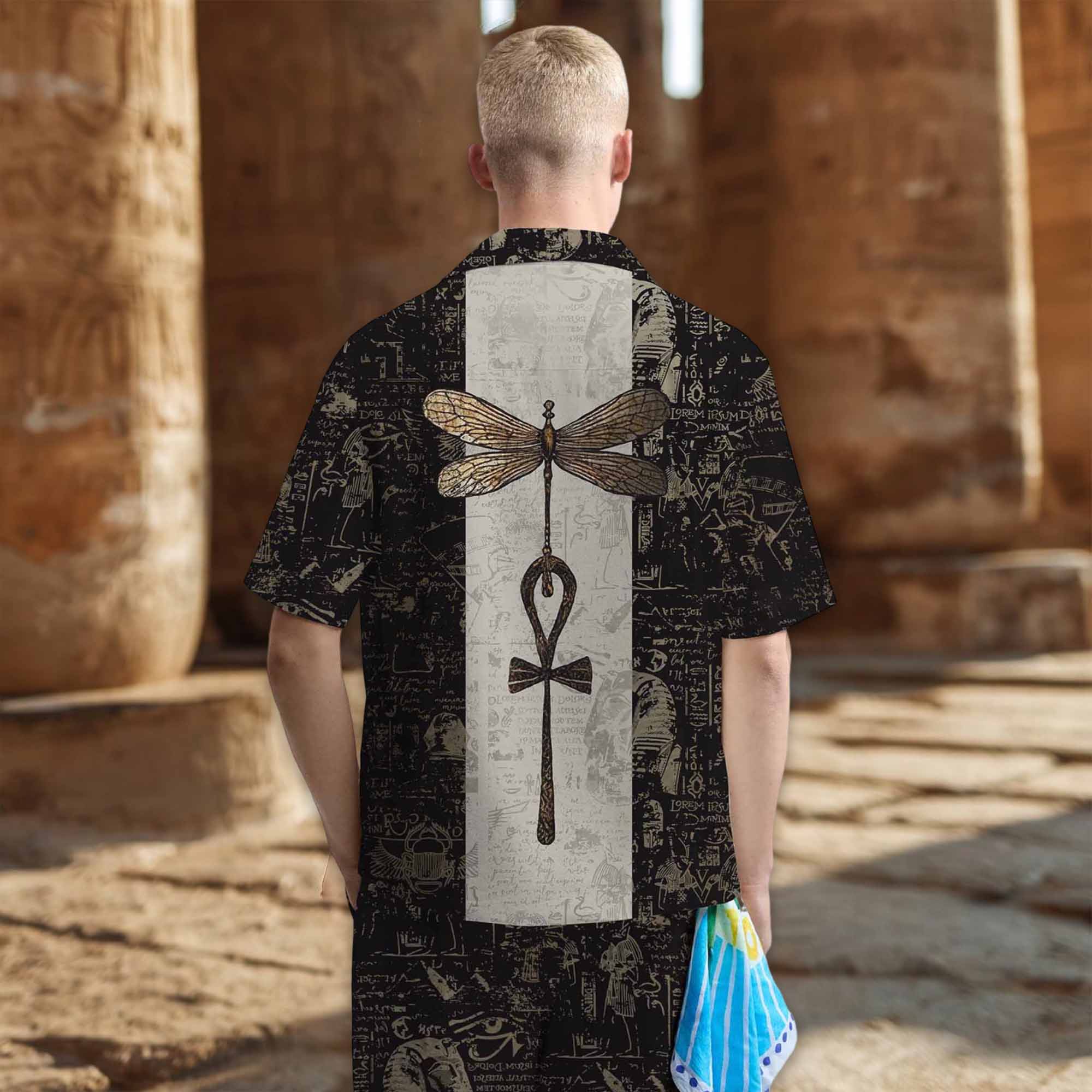 Egyptian Dragonfly Vintage Gradient Art Casual Short-Sleeved Shirt$43.99 USD$69.00 USD