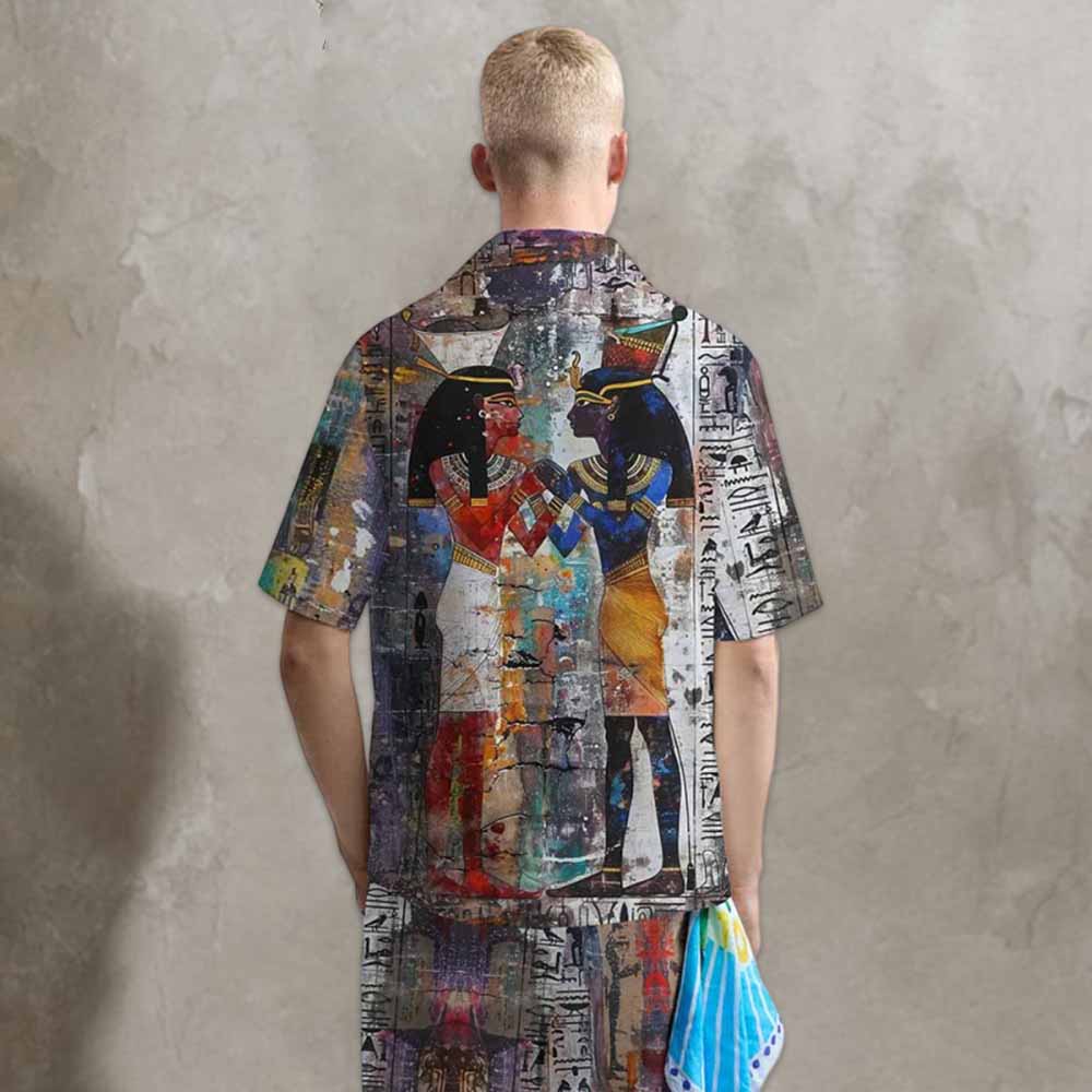 Vintage Egyptian Hieroglyphics & Goddess Isis Pattern Camping Collar Short-Sleeved Shirt$43.99 USD$69.00 USD