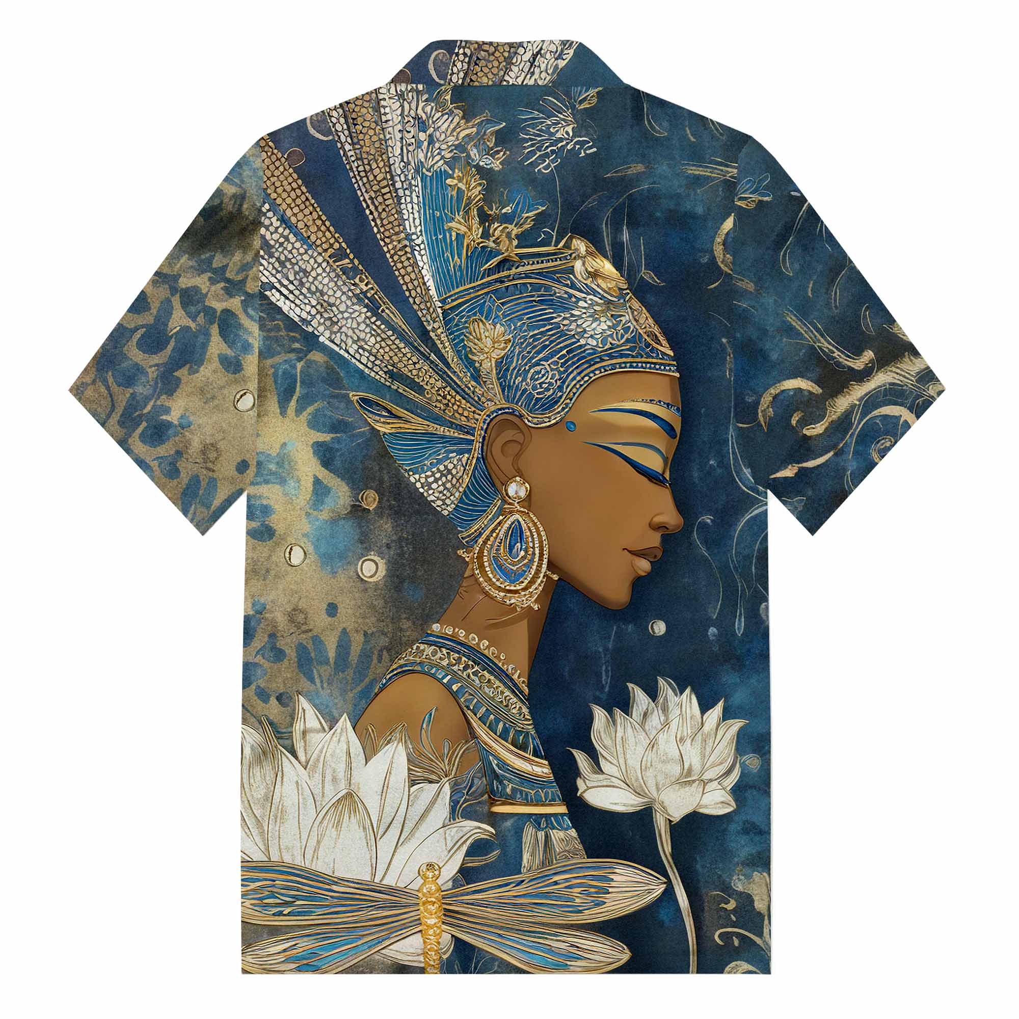 Egyptian Goddess & Dragonfly Floral Pattern Camp Collar Short Sleeve Shirt$43.99 USD$69.00 USD