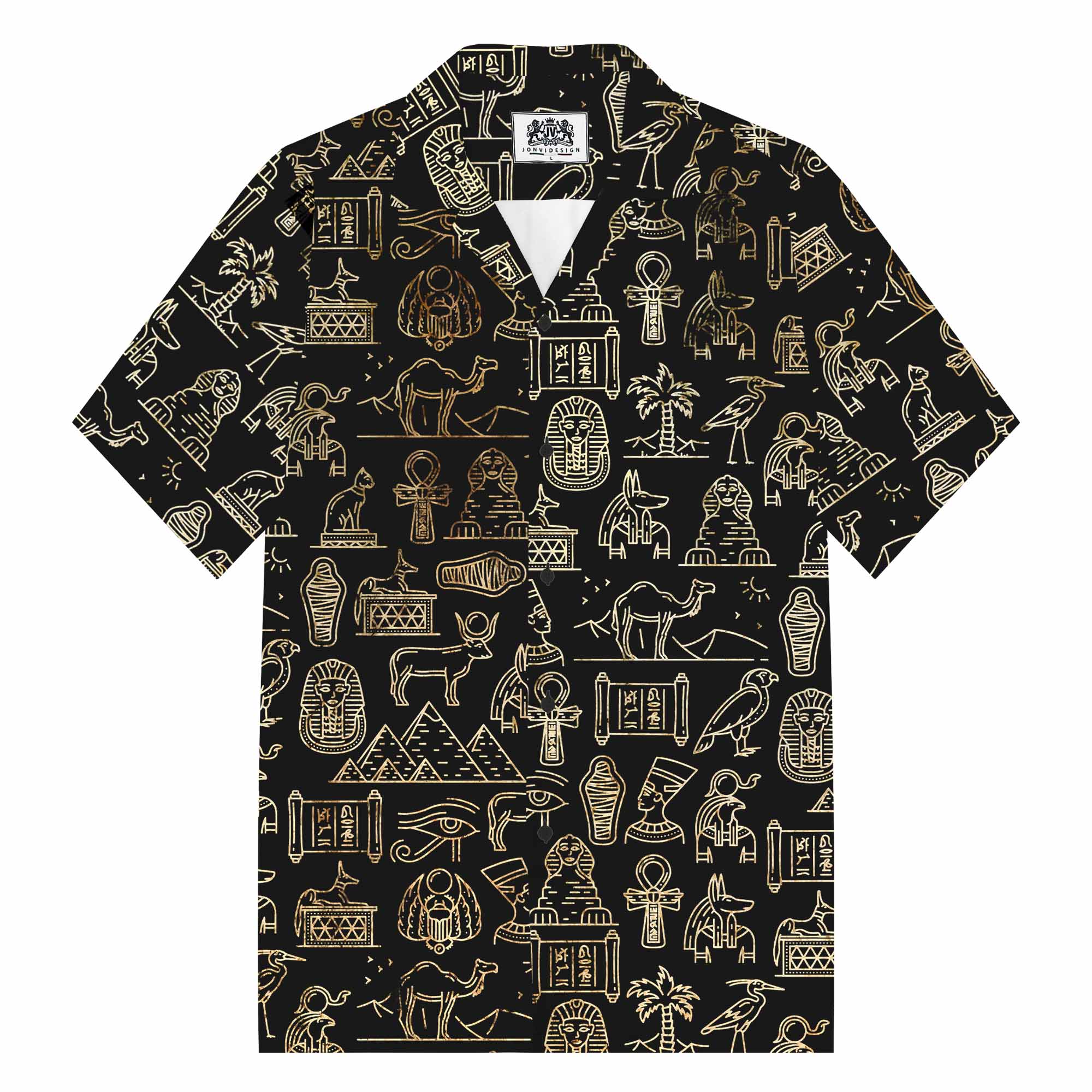 Ancient Egyptian Hieroglyph Pharaoh God Men's Camp Collar Short Sleeve Shirt$43.99 USD$69.00 USD