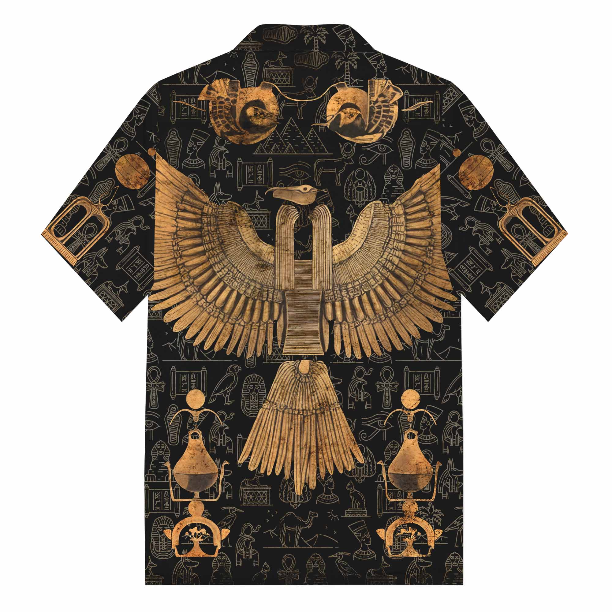 Ancient Egyptian Mythology Eagle God Totem Print Camp Collar Casual Short Sleeve Shirt$43.99 USD$69.00 USD