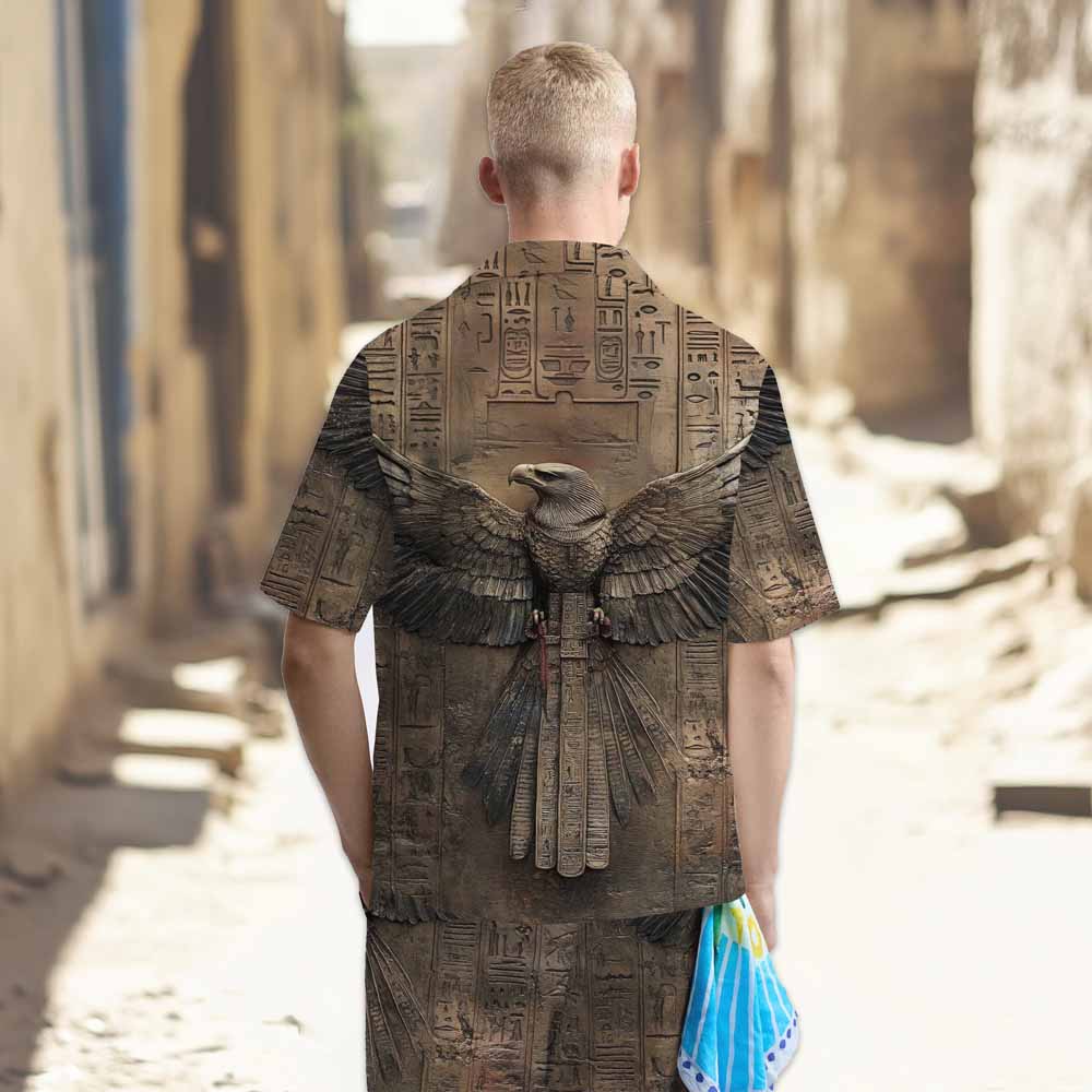 Ancient Egyptian Runes & Eagle Pattern Camp Collar Short-Sleeved Shirt$43.99 USD$69.00 USD