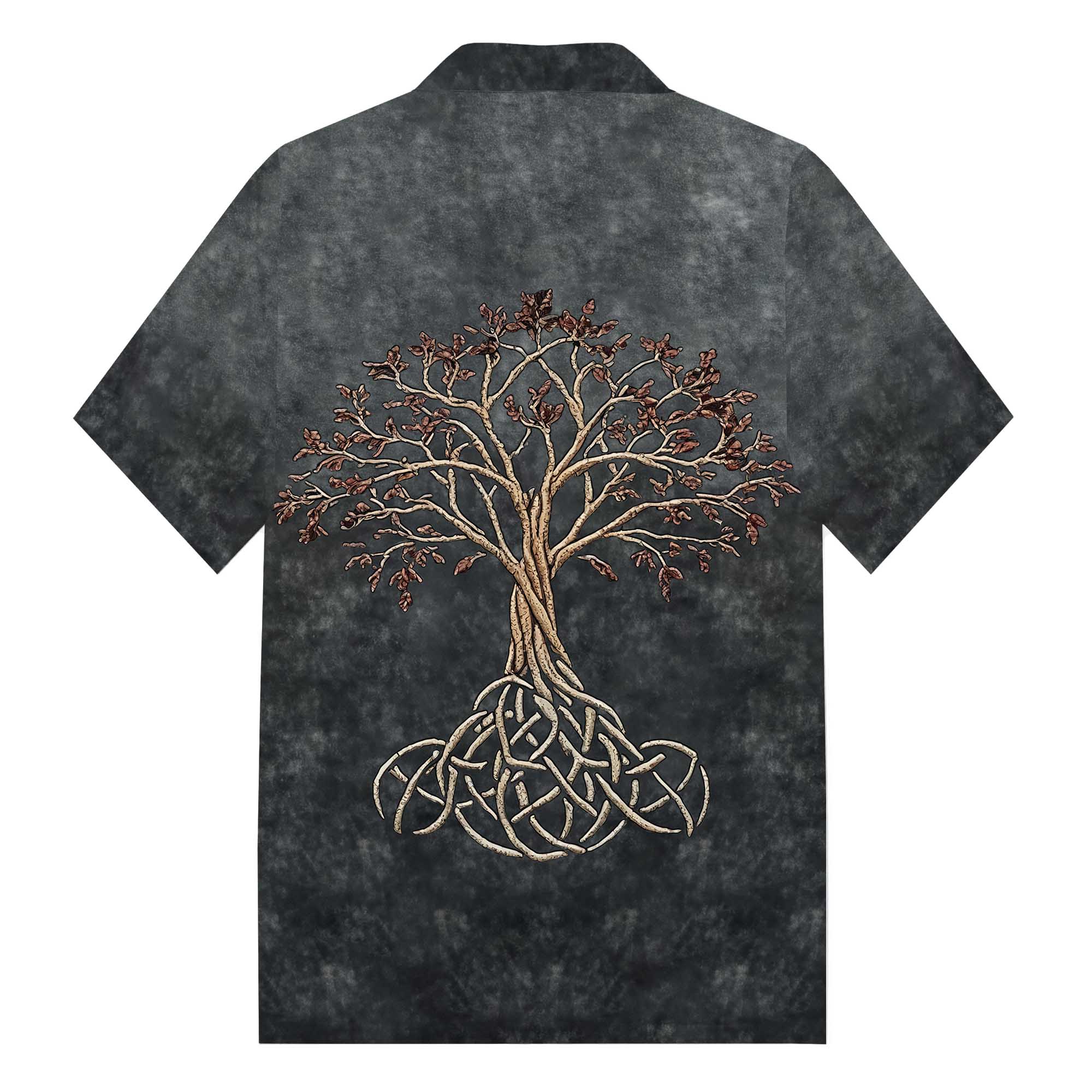 High-Grade Gradient Gray Viking Tree Of Life Pattern Camp Collar Short Sleeve Shirt$43.99 USD$69.00 USD