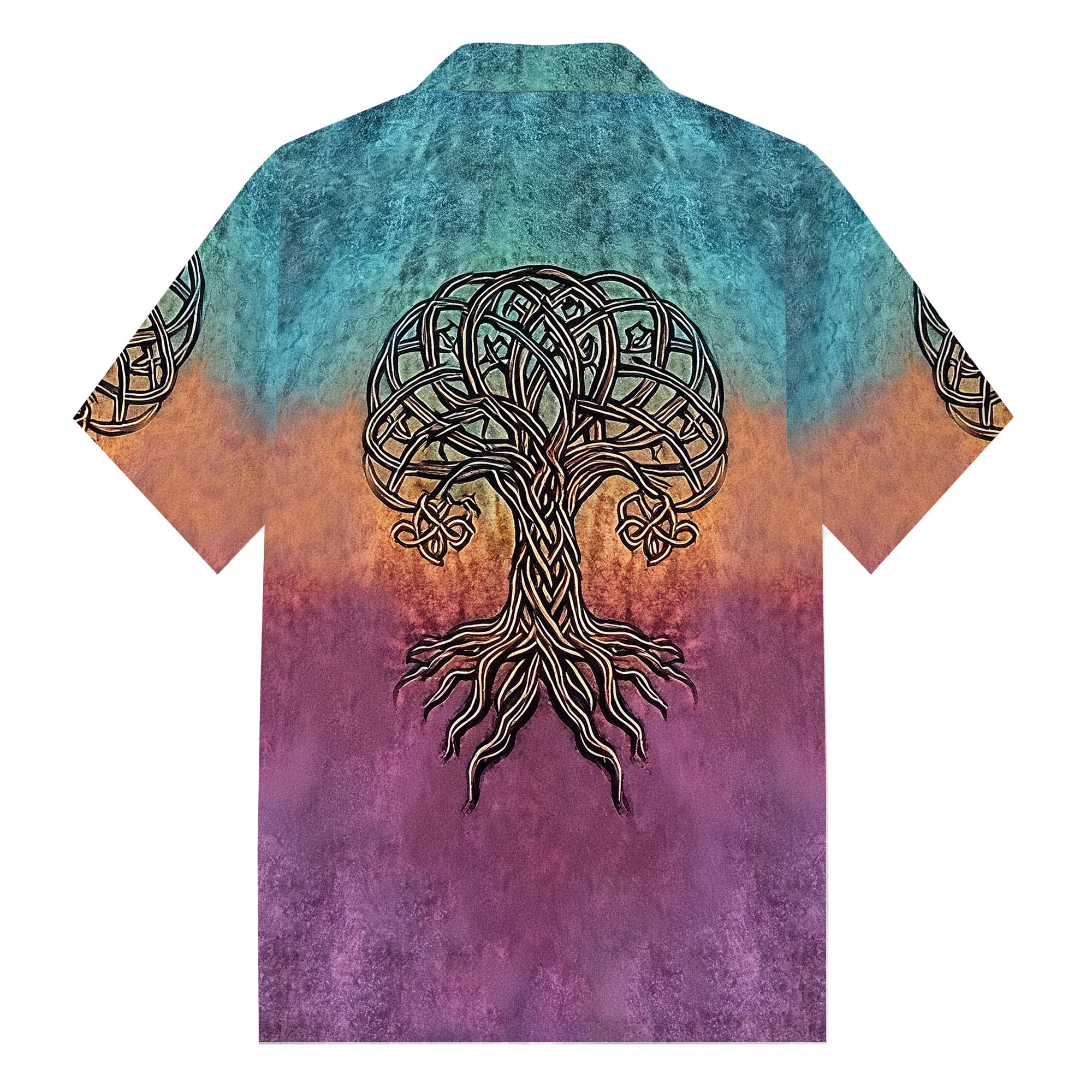 Men's Celtic Knot Tree Of Life Gradient Camp Collar Short Sleeve Shirt$43.99 USD$69.00 USD