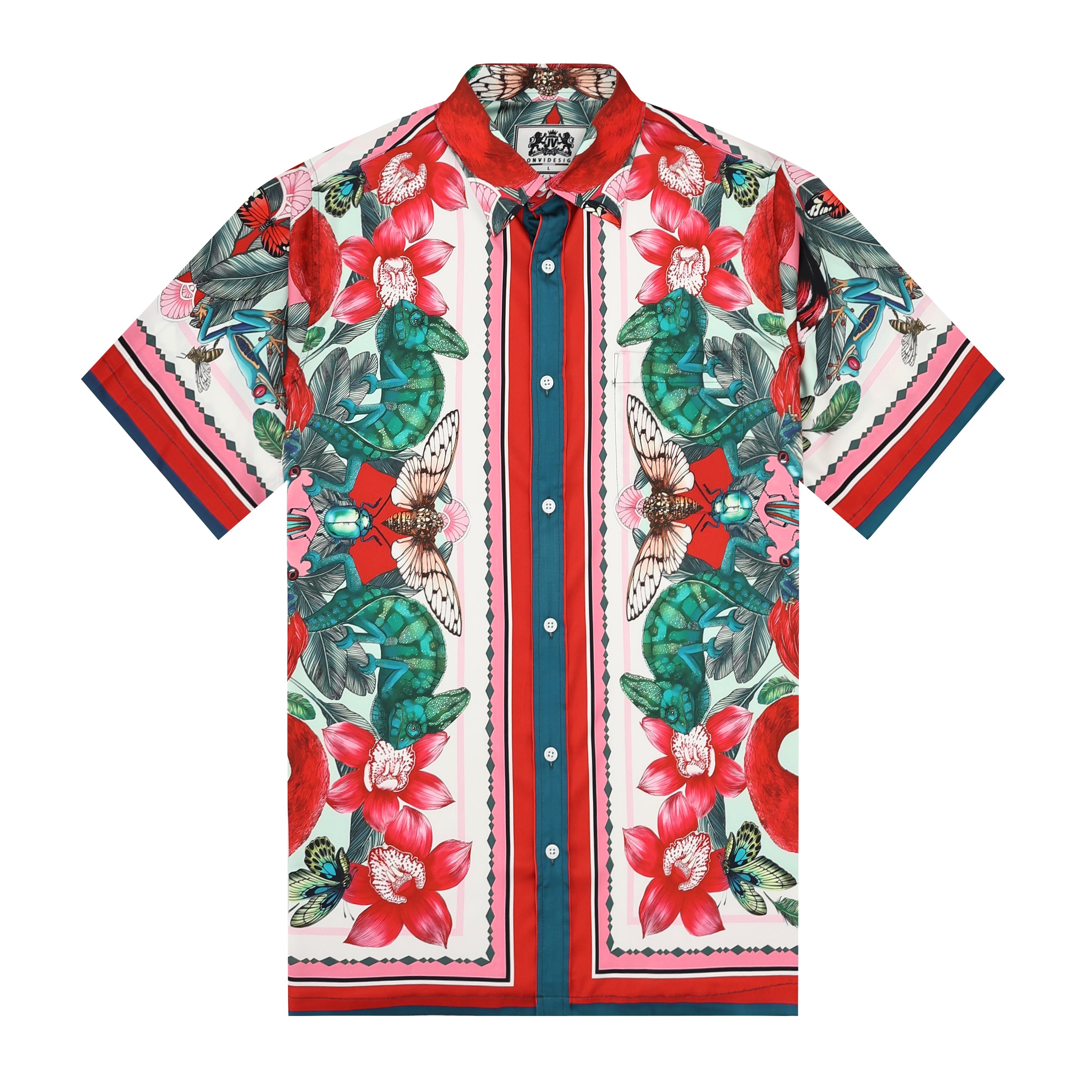 Animal Pattern Short Sleeve Shirt for Men with Chain Accents$45.00 USD$69.00 USD