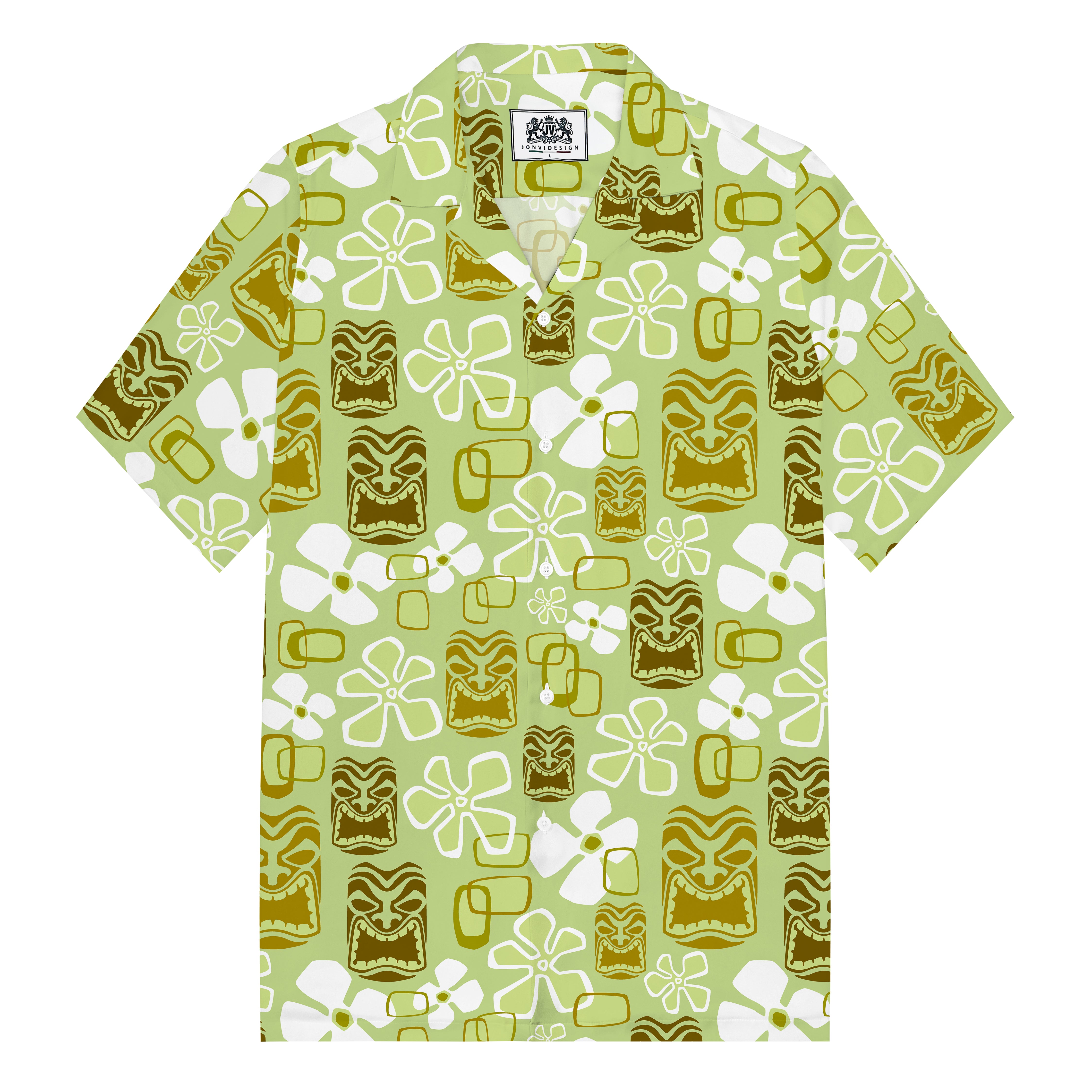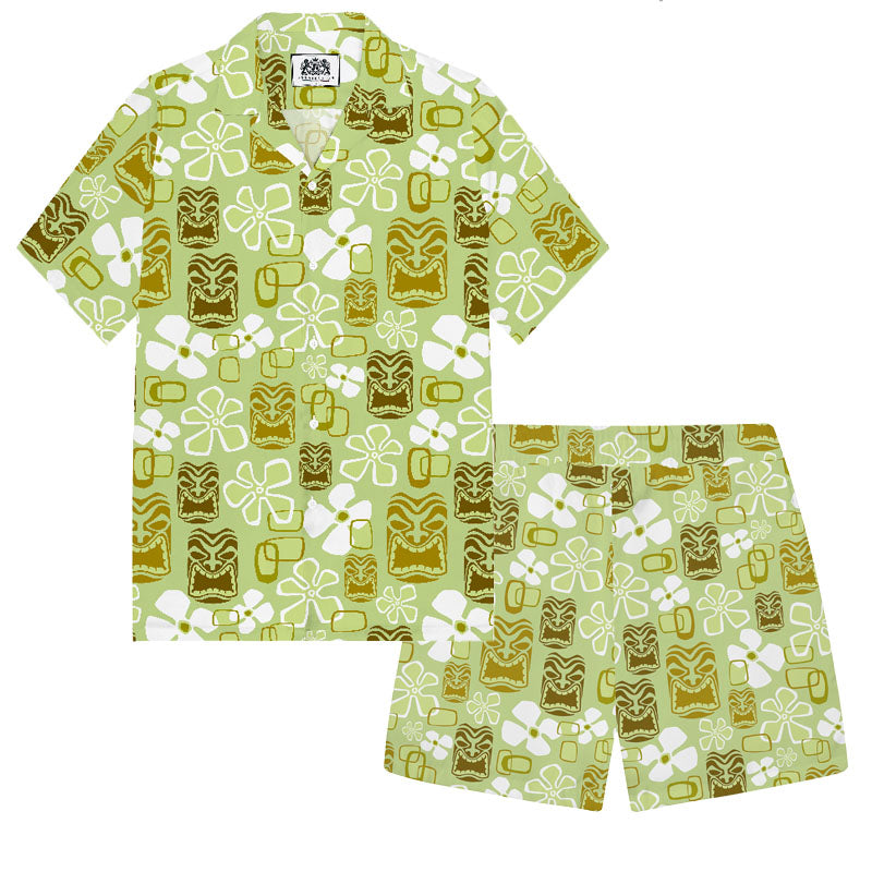 Vintage Holiday Tiki Art Green Men's Hawaiian Camp Collar Short Sleeve Shirt$43.99 USD$69.00 USD