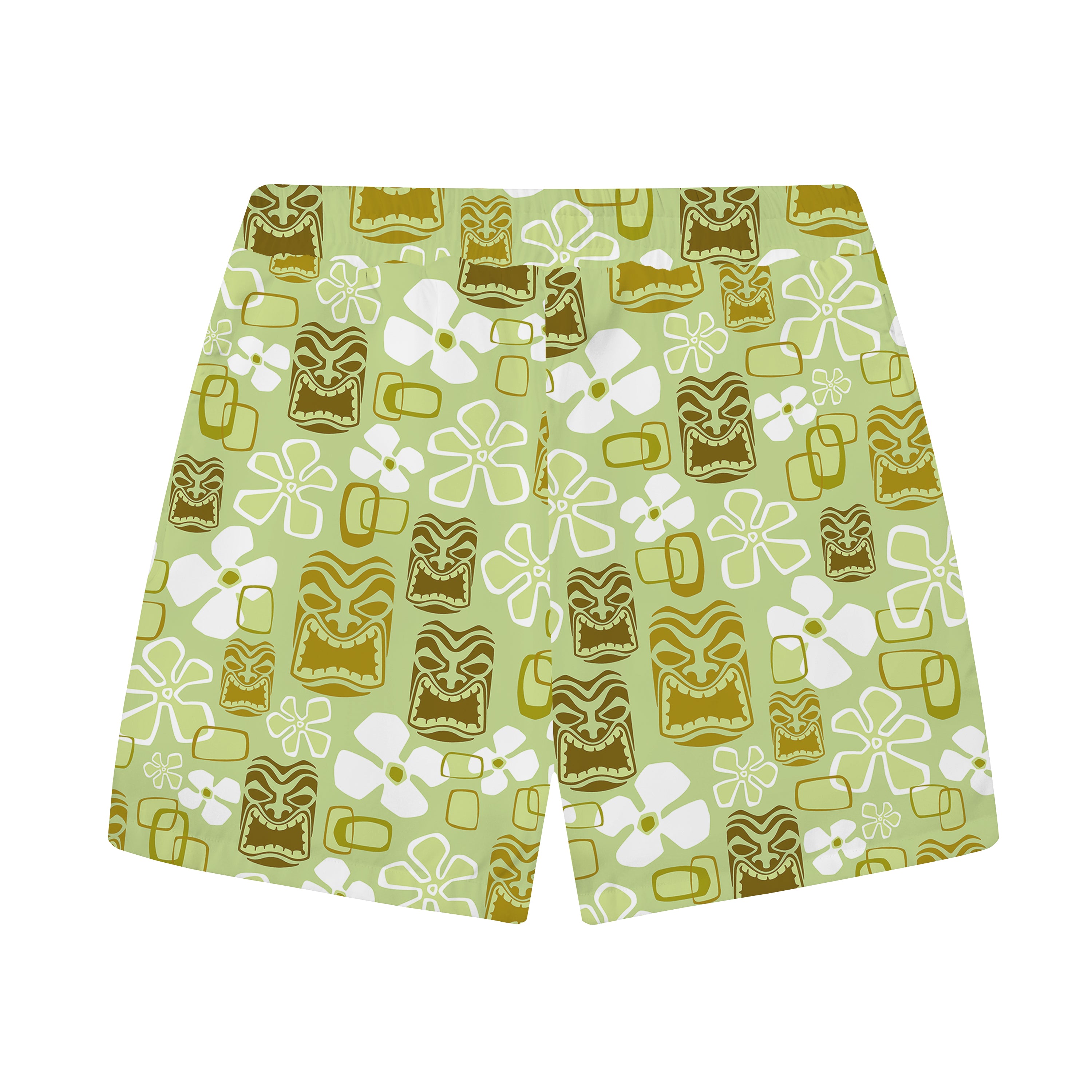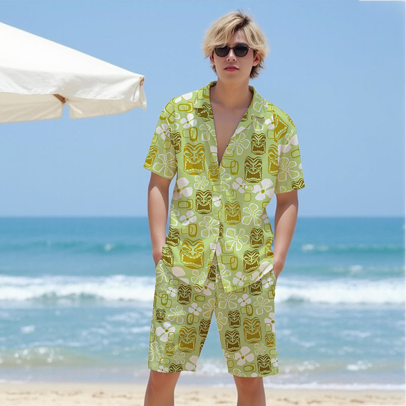 Vintage Holiday Tiki Art Green Men's Hawaiian Elastic Waistband Casual Shorts$38.99 USD$50.00 USD