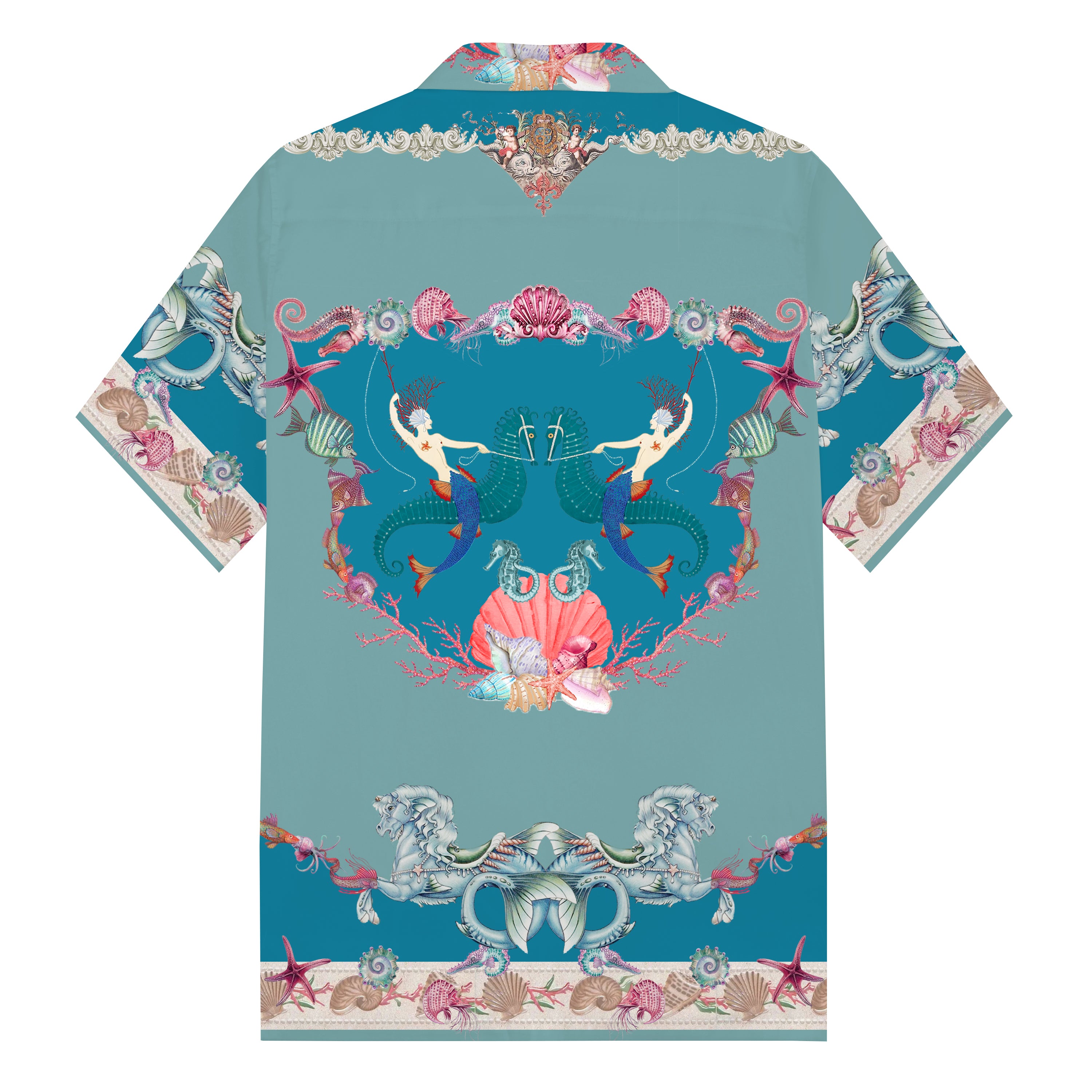 Mermaid and Ocean Print Long Sleeve Camp Collar Shirt$49.90 USD$89.00 USD