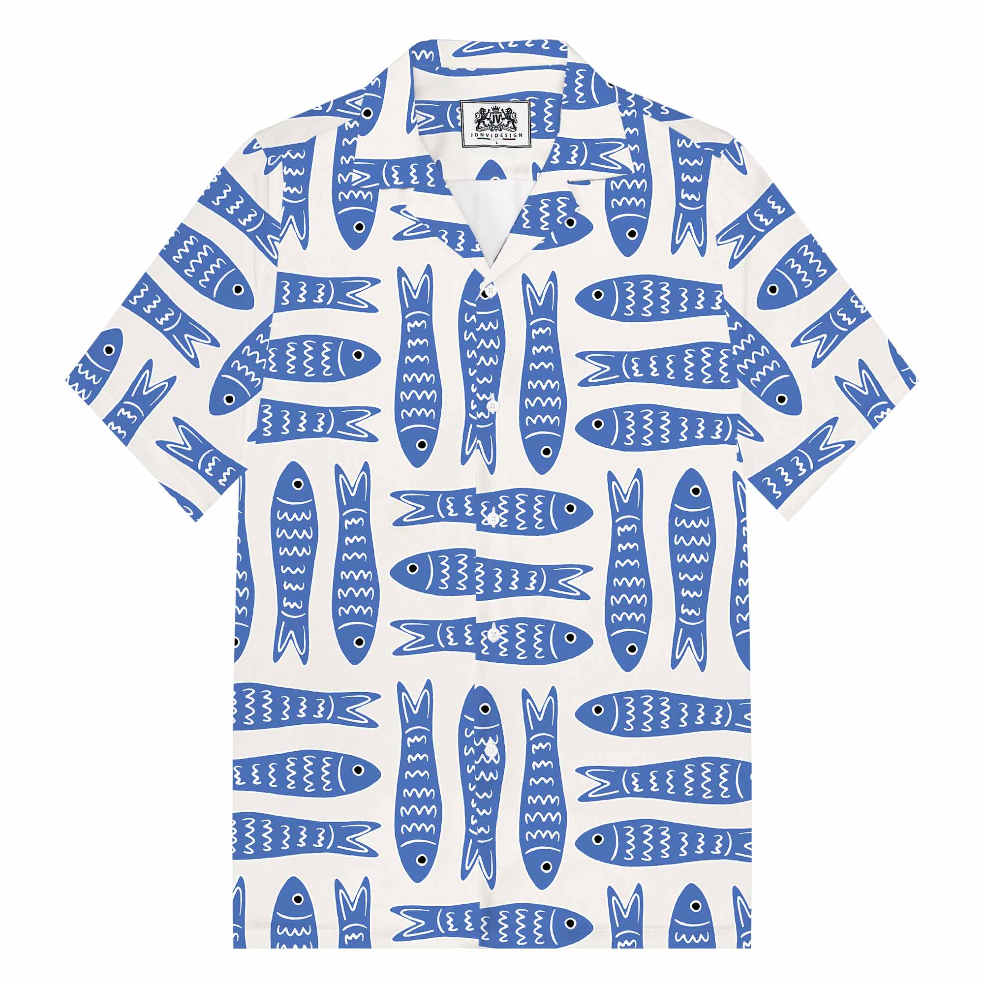 Summer Hawaiian Blue Fish Pattern Camp Collar Short Sleeve Shirt$43.99 USD$69.00 USD
