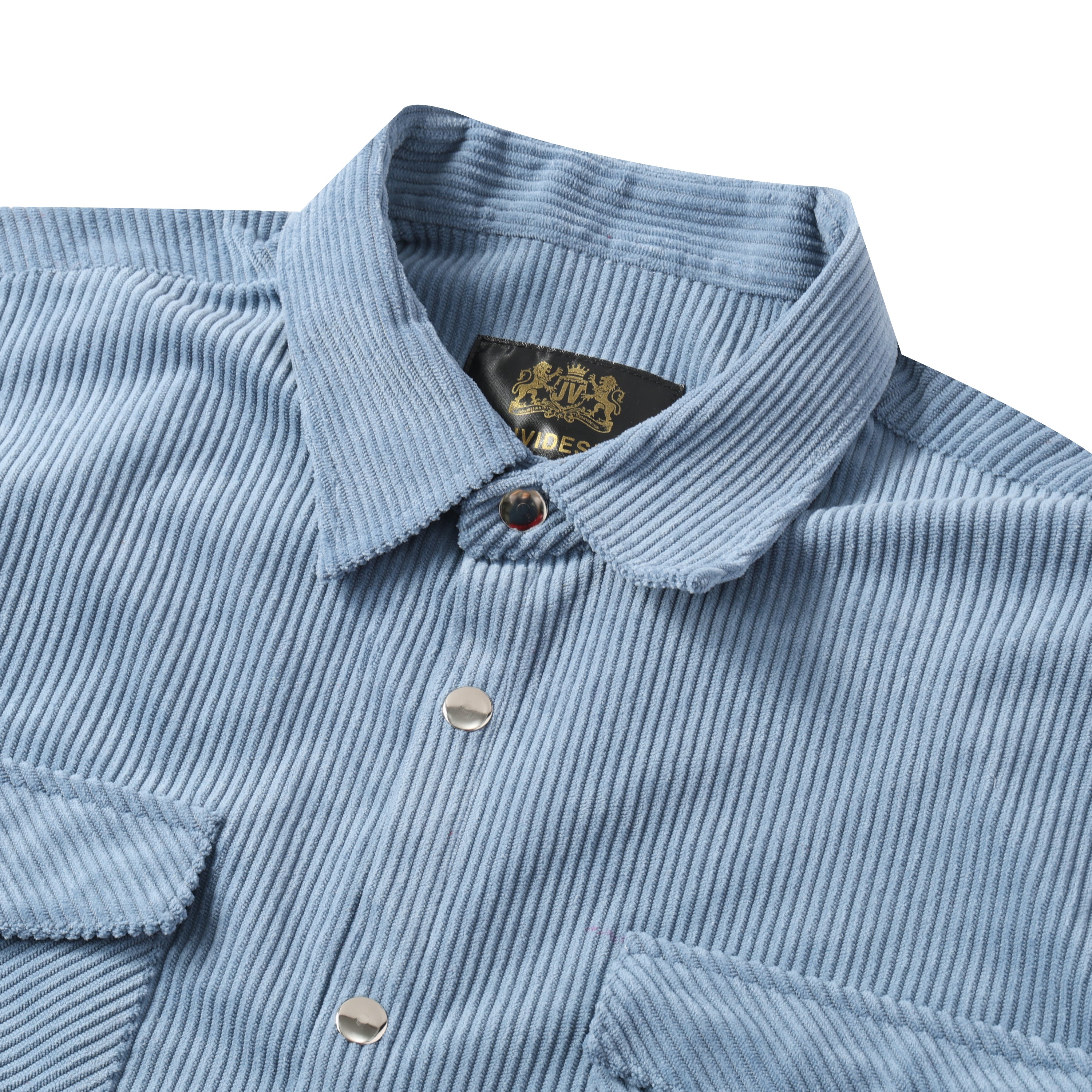 Corduroy Plain Color Snap Closure Long Sleeve Shirt-Serenity Blue$38.90 USD$49.00 USD