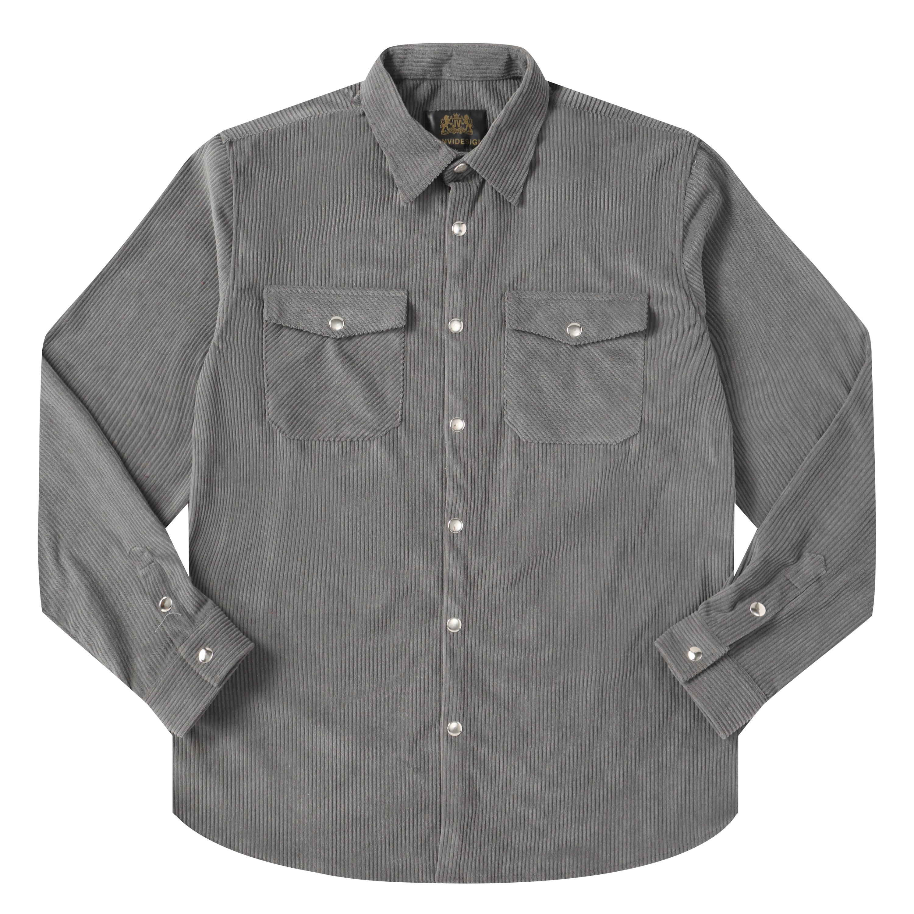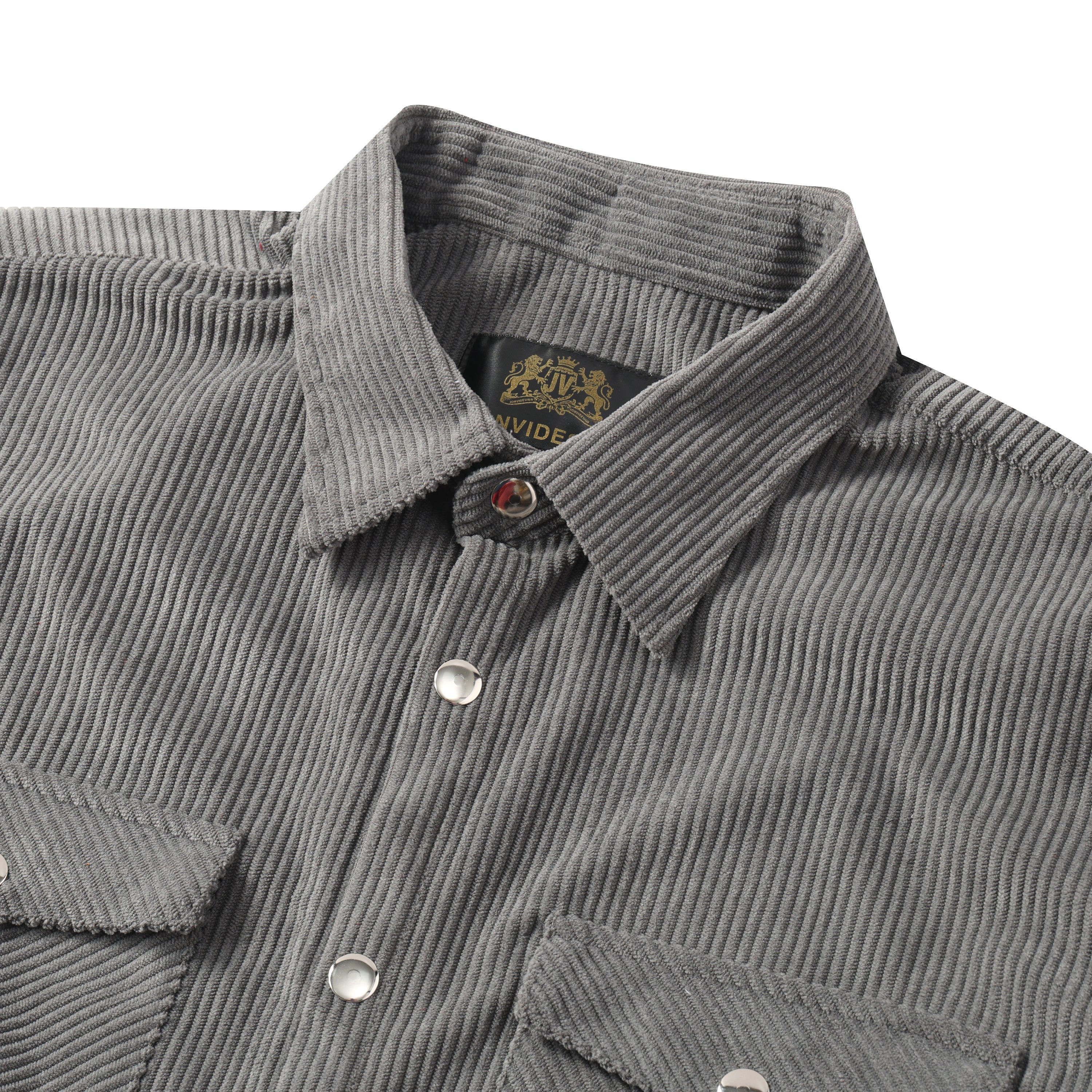 Corduroy Plain Color Snap Closure Long Sleeve Shirt-Grey$38.90 USD$49.00 USD