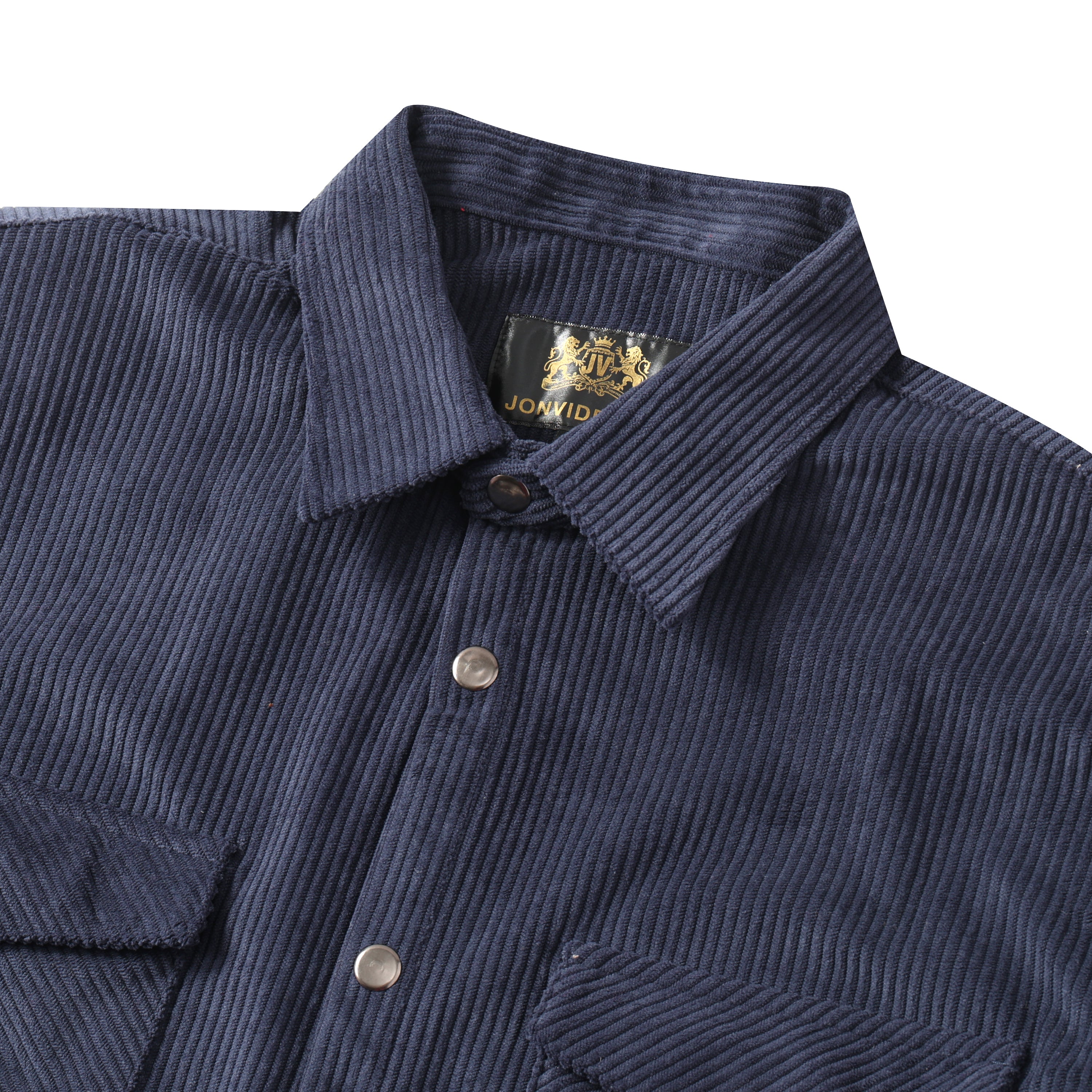 Corduroy Plain Color Snap Closure Long Sleeve Shirt-Navy Blue$38.90 USD$49.00 USD