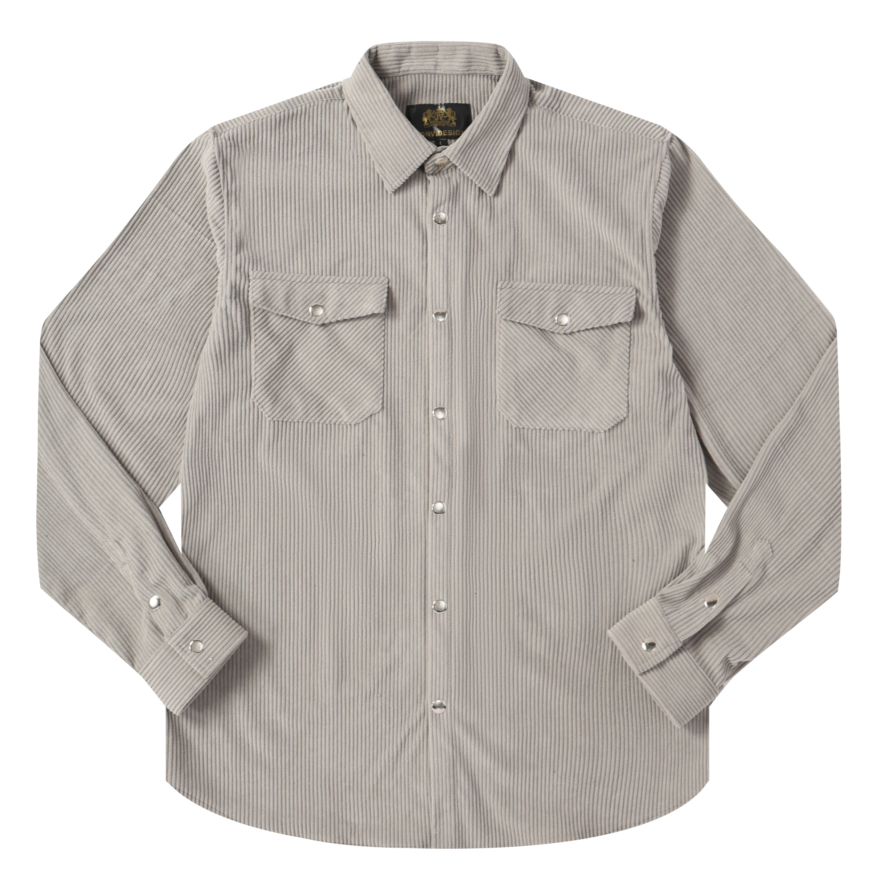 Corduroy Plain Color Snap Closure Long Sleeve Shirt-Light Grey$38.90 USD$49.00 USD