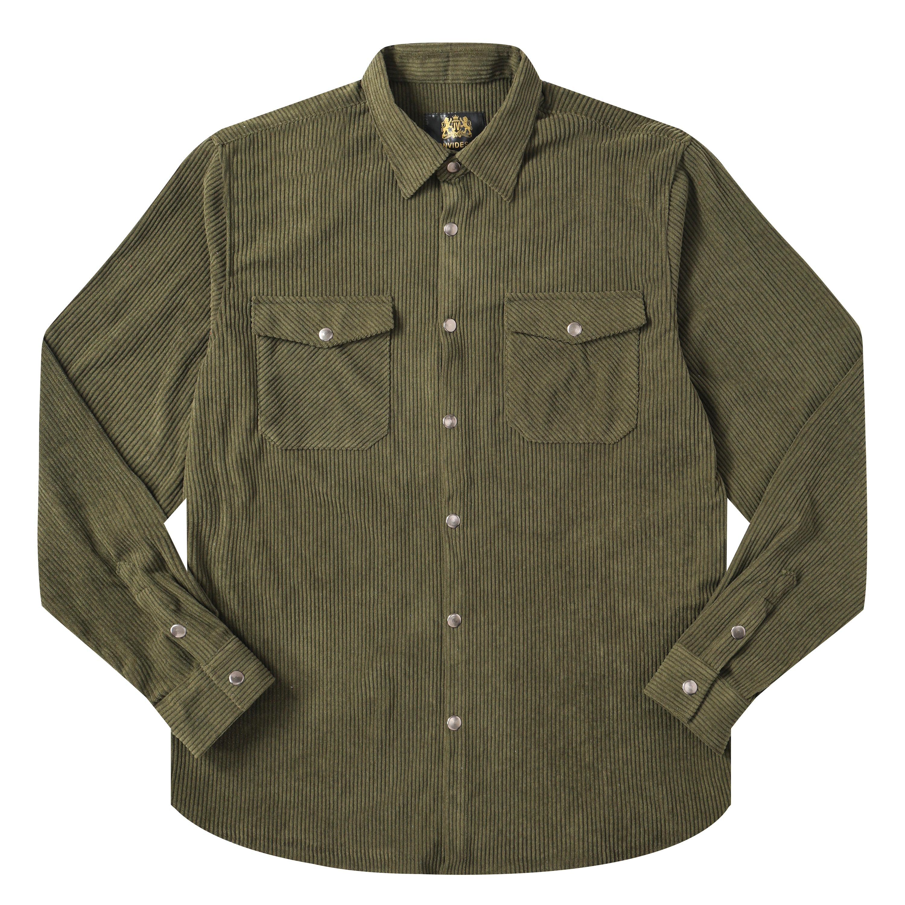 Corduroy Plain Color Snap Closure Long Sleeve Shirt-Olive Green$38.90 USD$49.00 USD