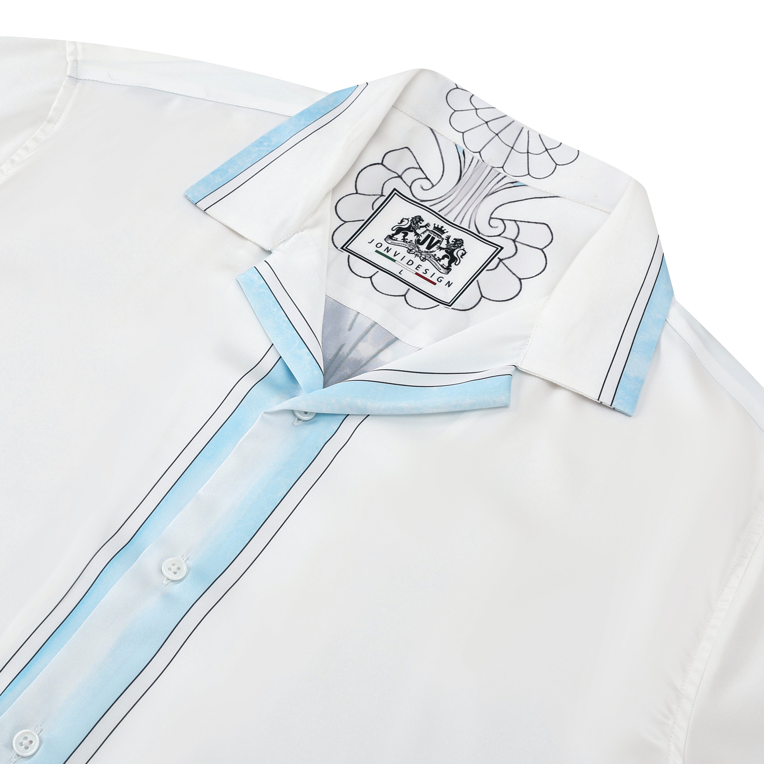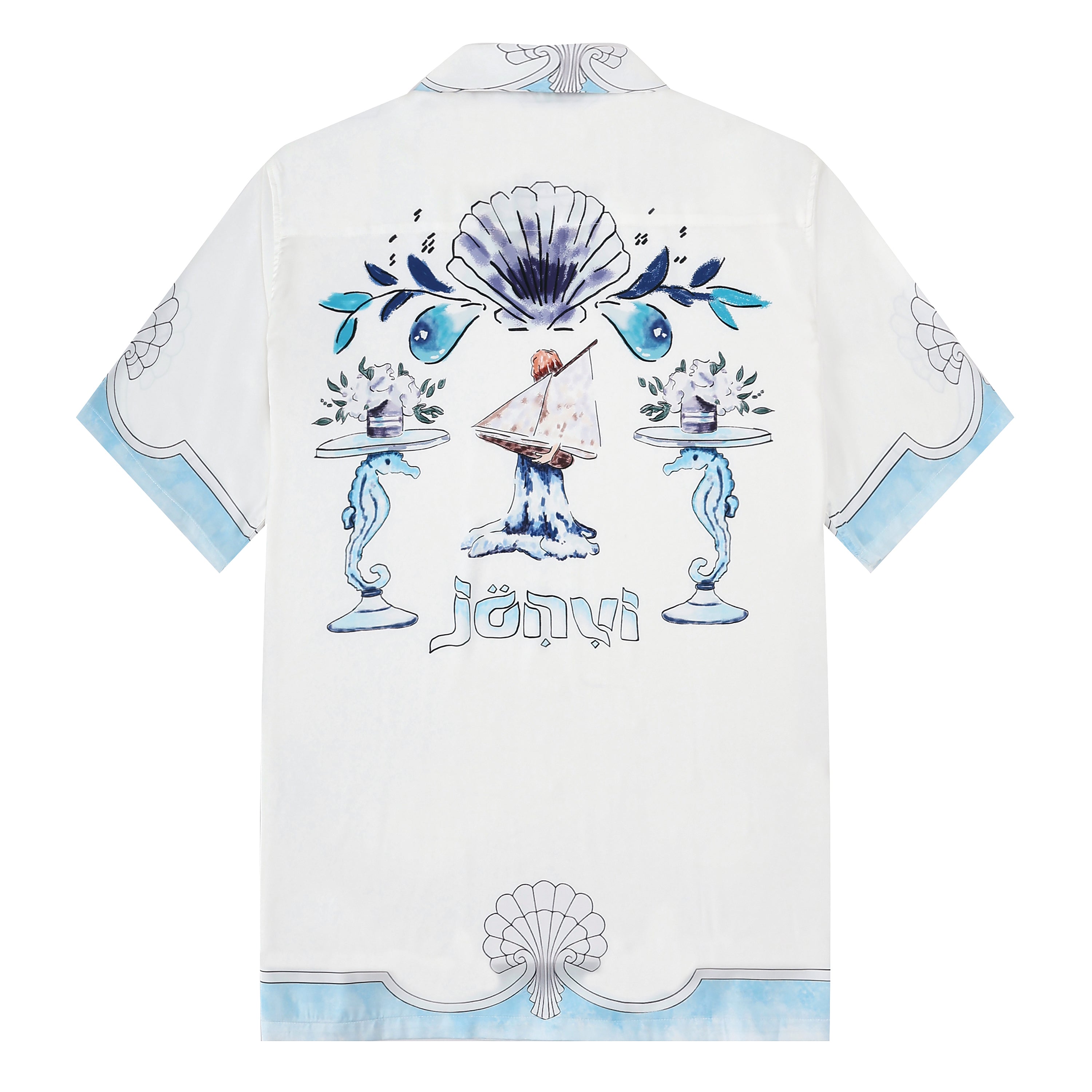 Blue Seahorse Shell Pattern Camp Collar Short Sleeve Shirt$43.99 USD$69.00 USD
