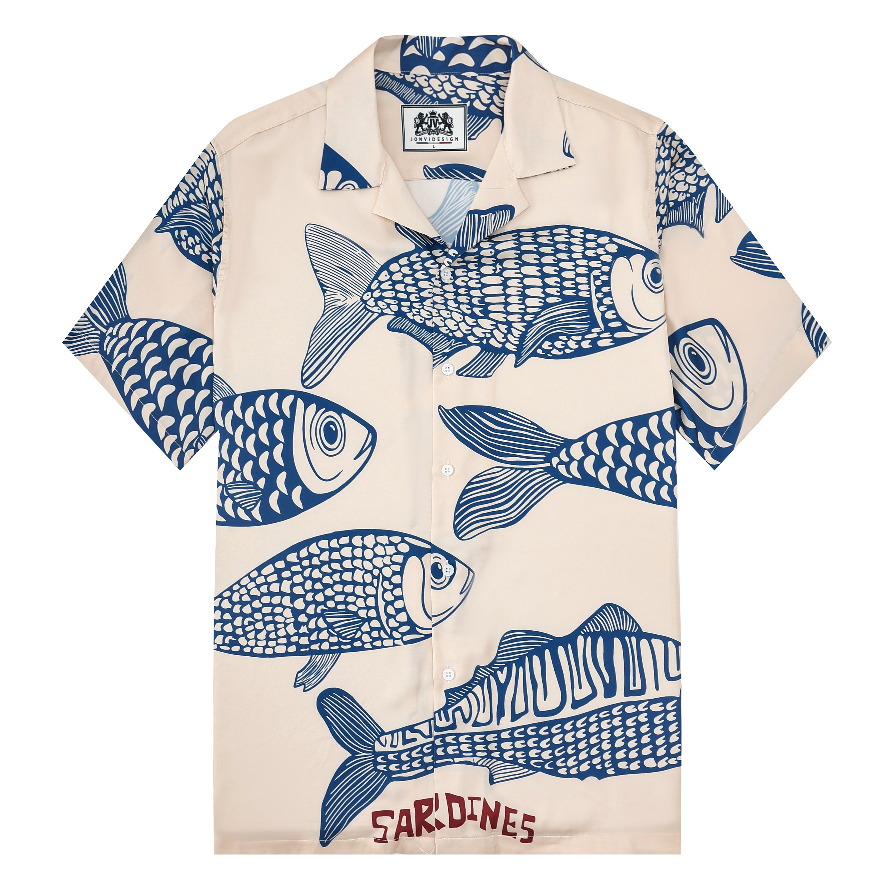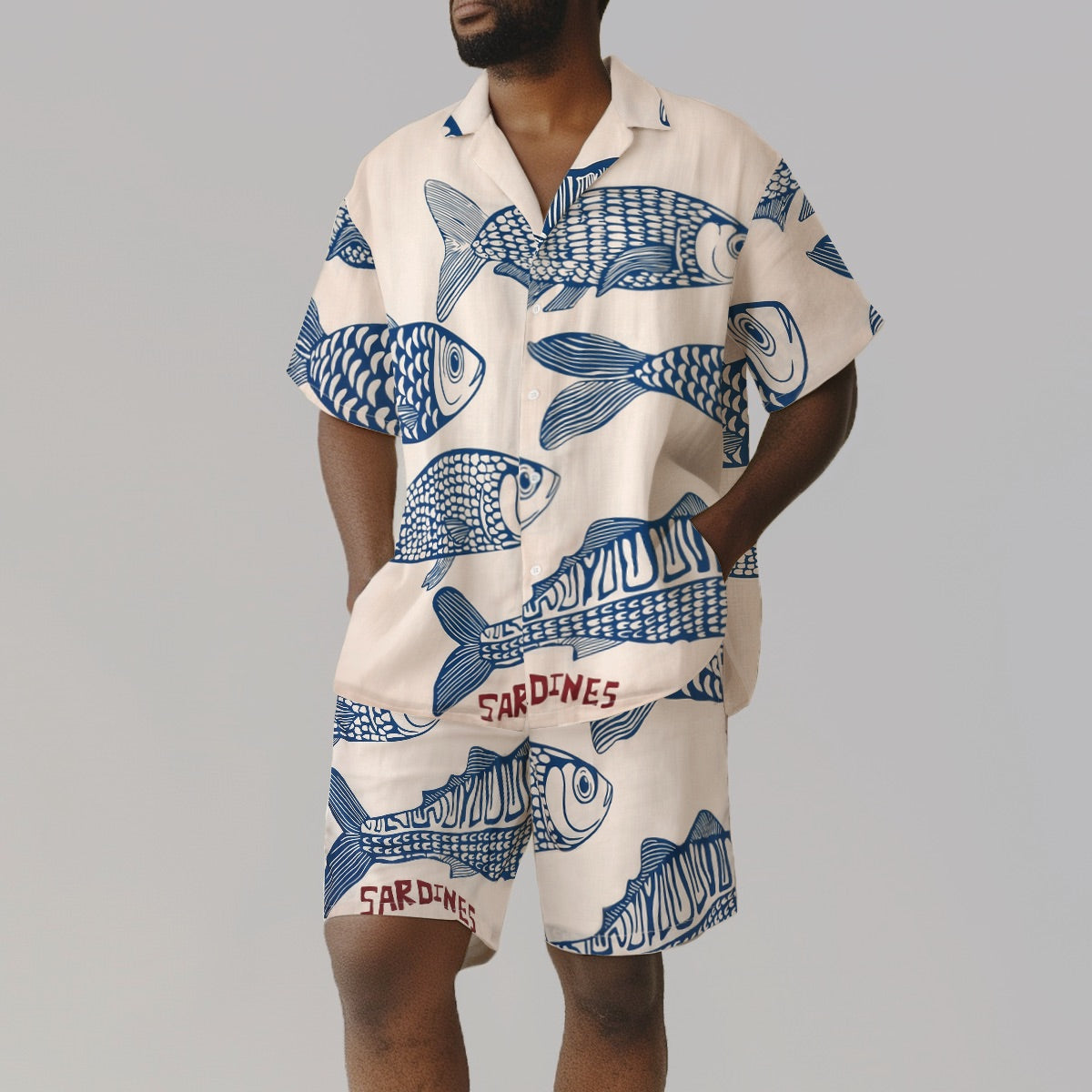Vacation Wear Sardine Pattern Short Sleeve Camp Collar Shirt$43.99 USD$69.00 USD