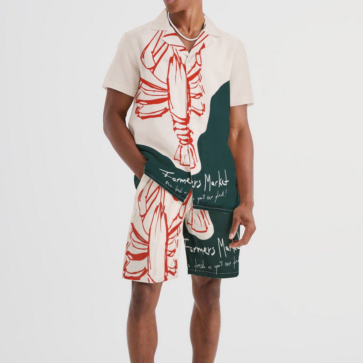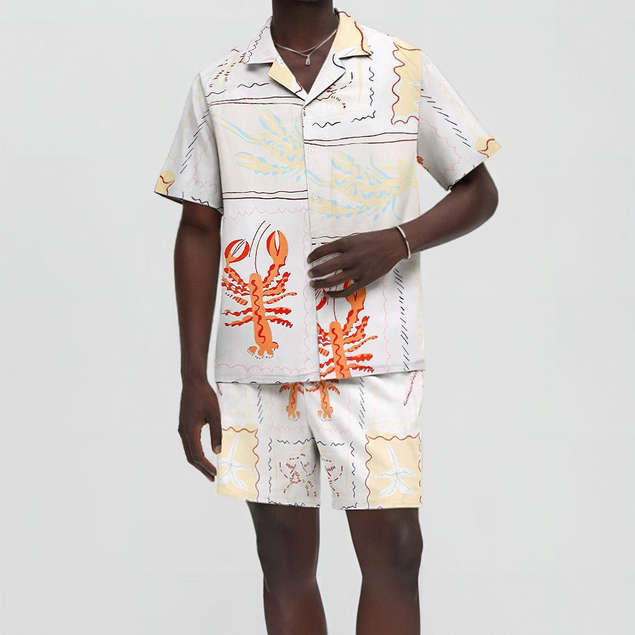 Aloha Style Lobster Pattern Short Sleeve Camp Collar Shirt$43.99 USD$69.00 USD