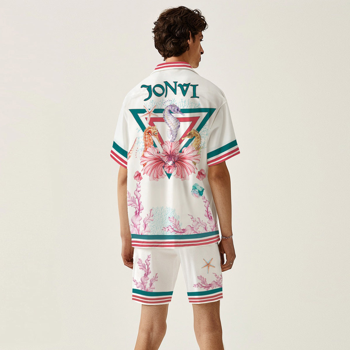Coral Reef Seahorse Pattern Camp Collar Casual Shirt for Men$43.99 USD$69.00 USD