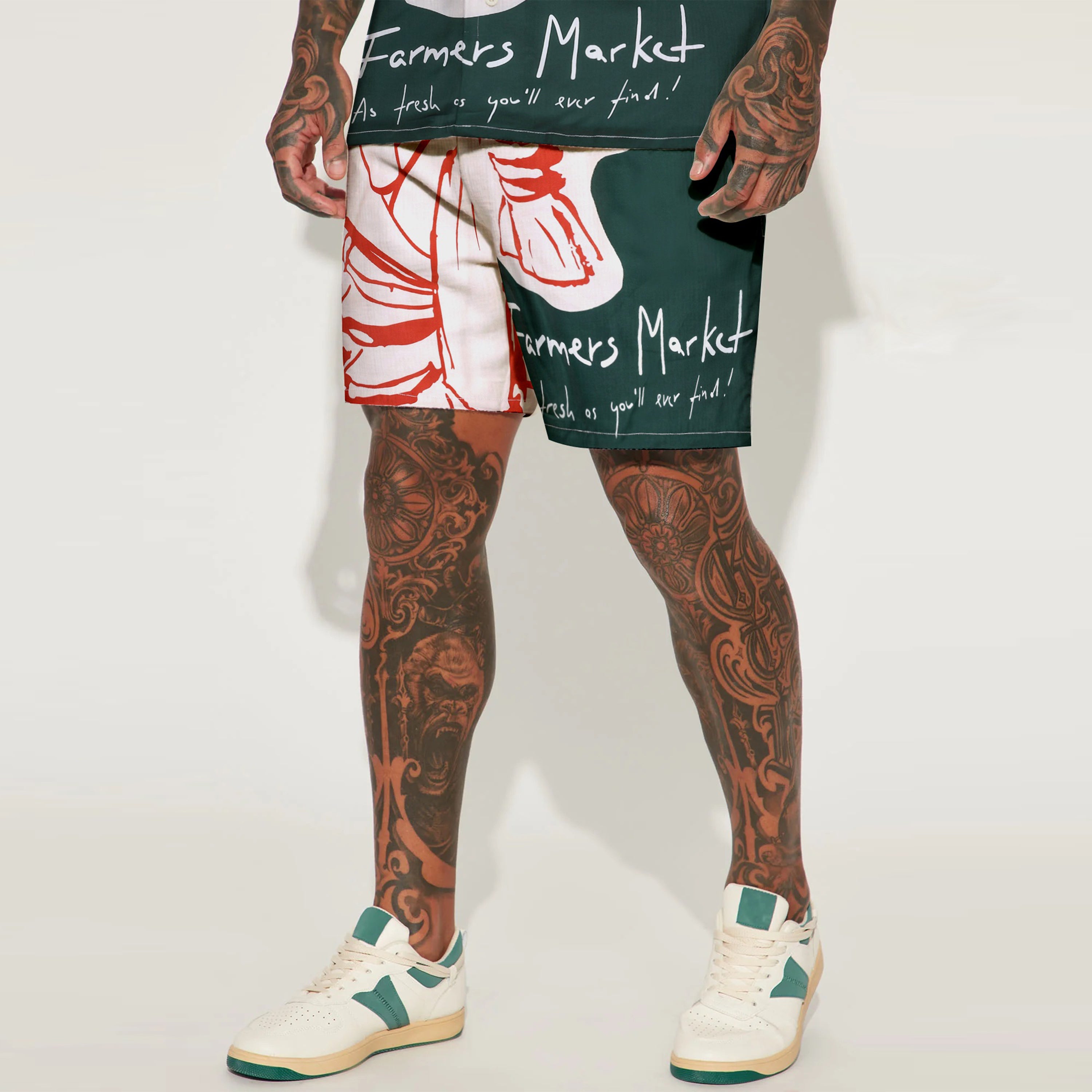 Vacation Wear Sardine Pattern Silk Fiber Waistband Shorts$38.99 USD$69.00 USD