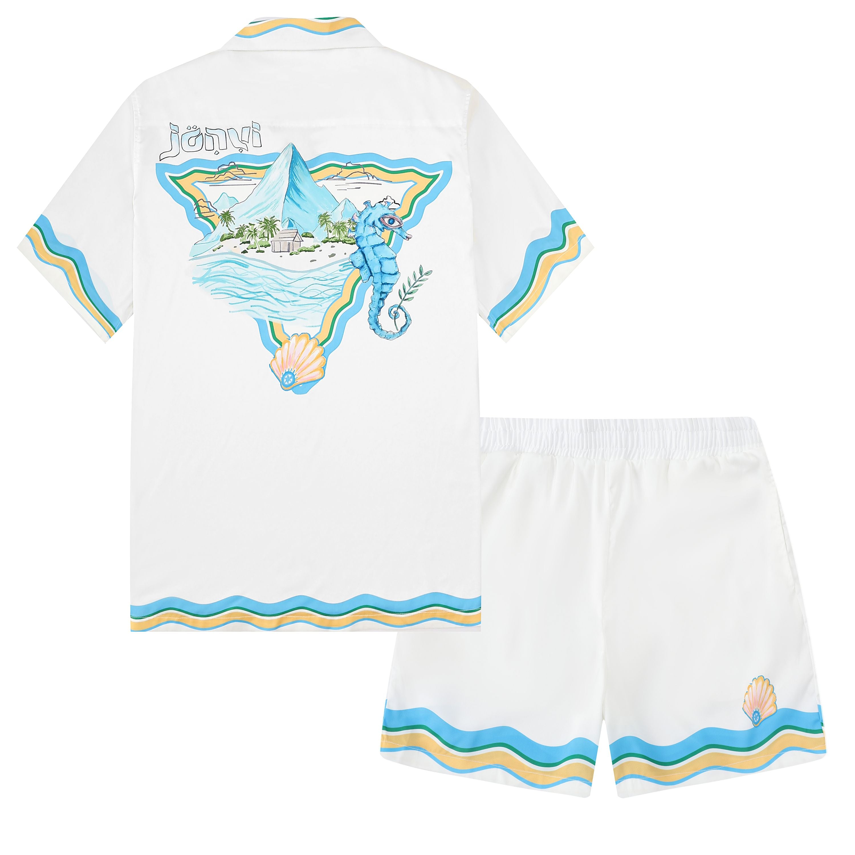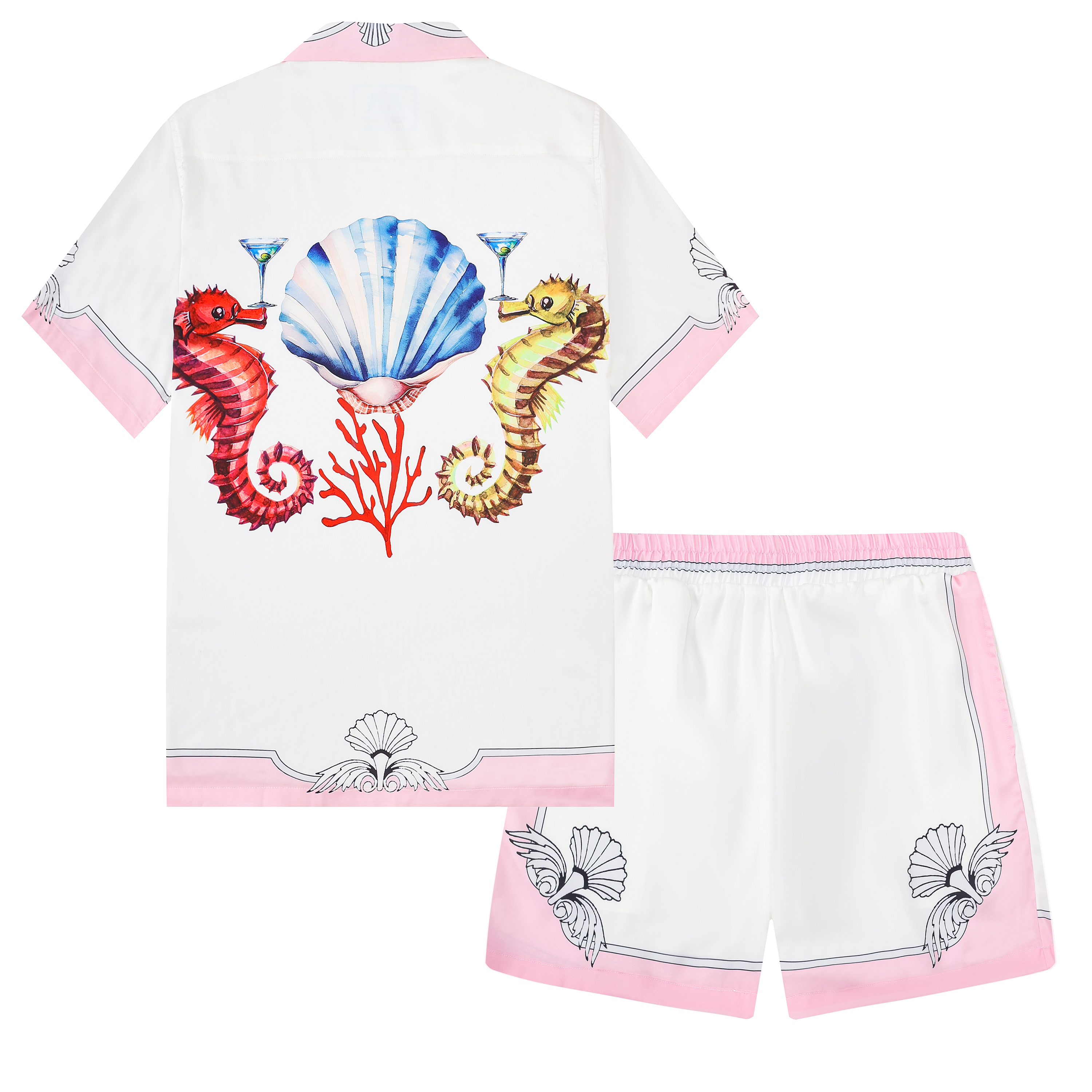 Seahorse Beach Pattern Short Sleeve Camp Collar Shirt$43.99 USD$69.00 USD
