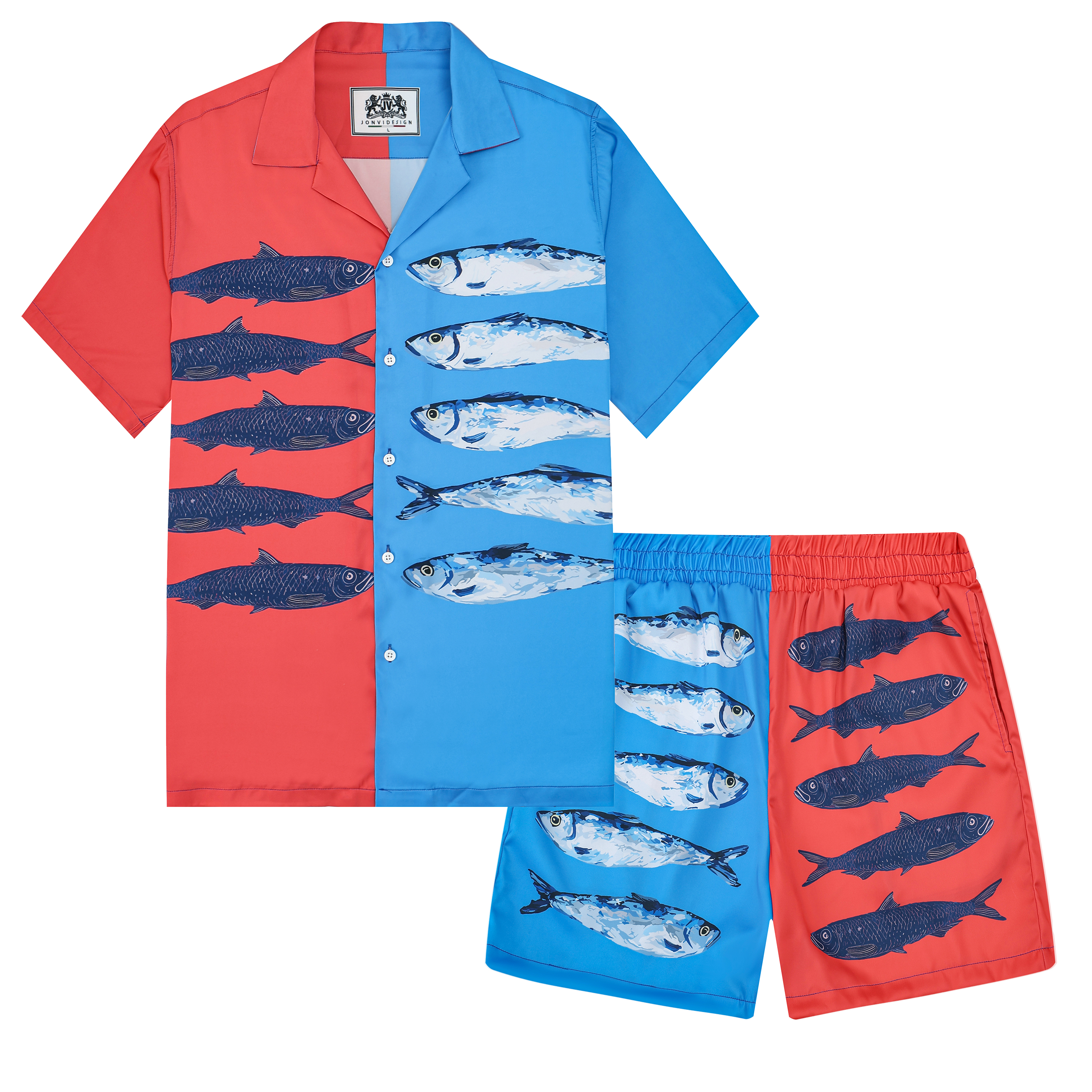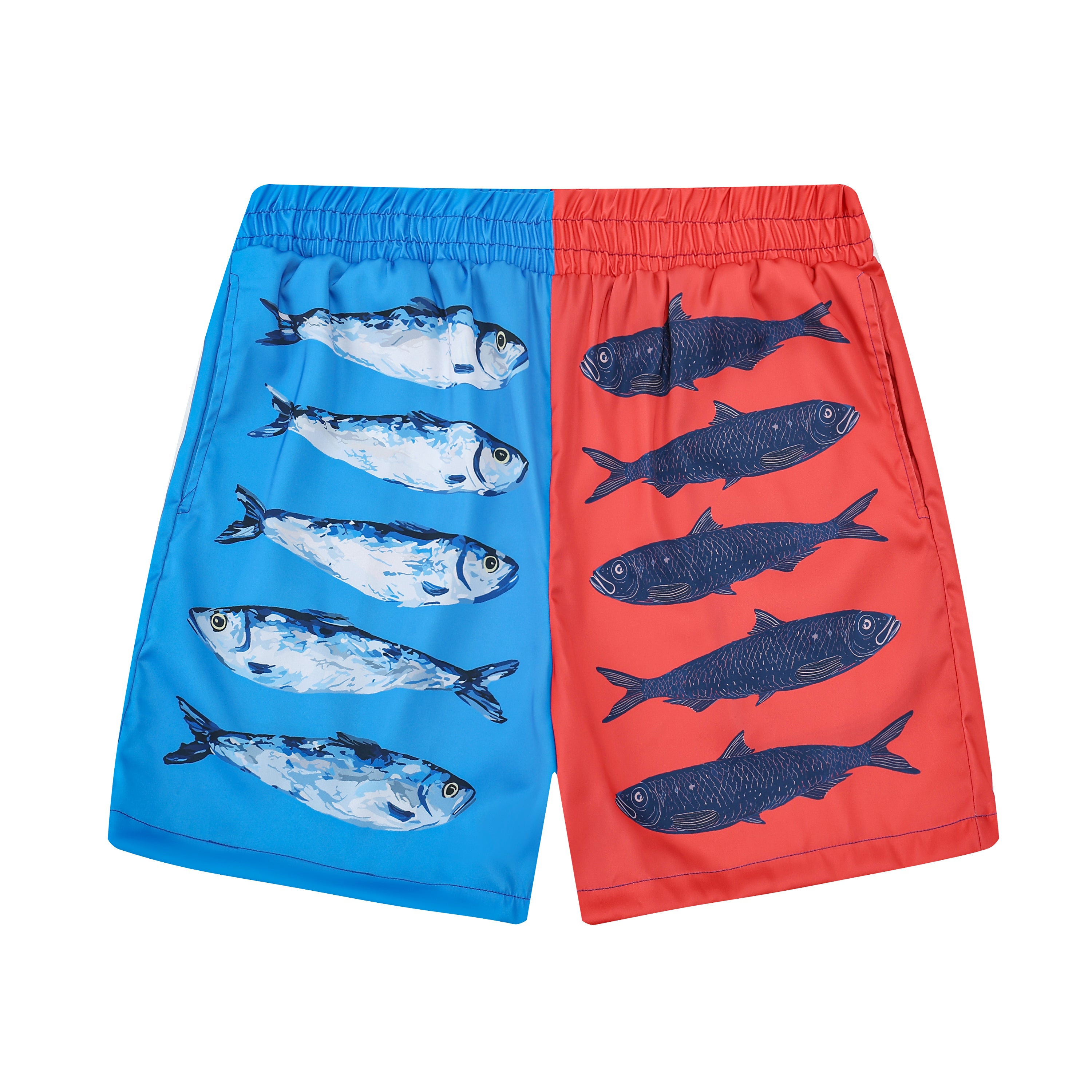 Splicing Color Sardine Print Elastic Waistband Summer Casual Shorts$38.99 USD$50.00 USD