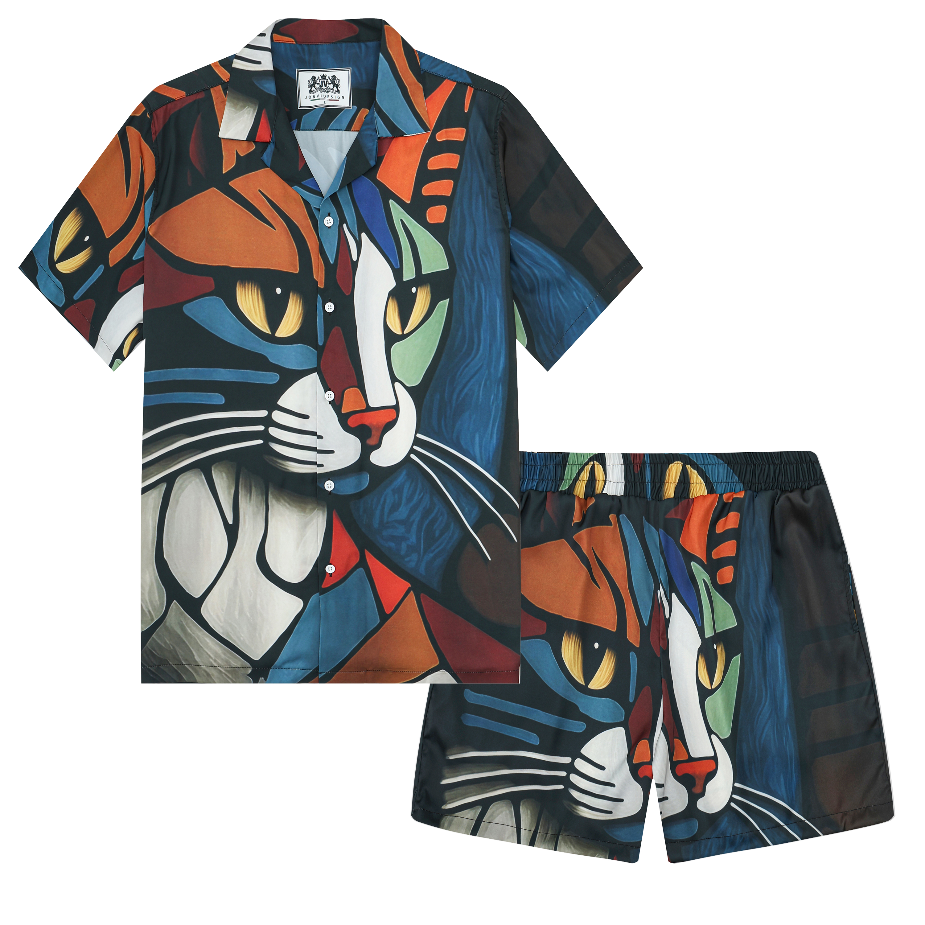 Cat Print Elastic Waistband Casual Shorts$38.99 USD$50.00 USD