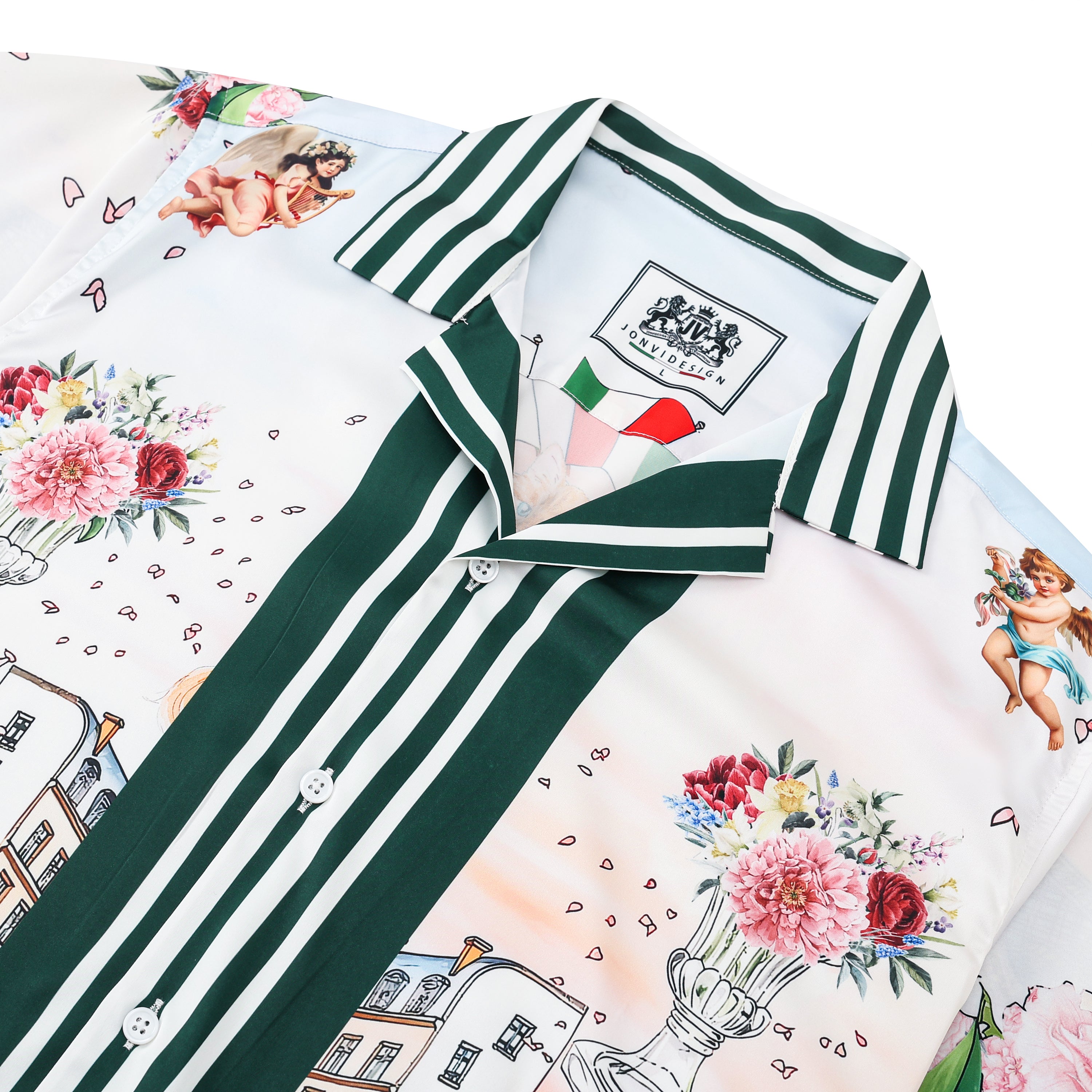 Tennis Palace Pattern Camp Collar Short Sleeve Shirt$43.99 USD$69.00 USD