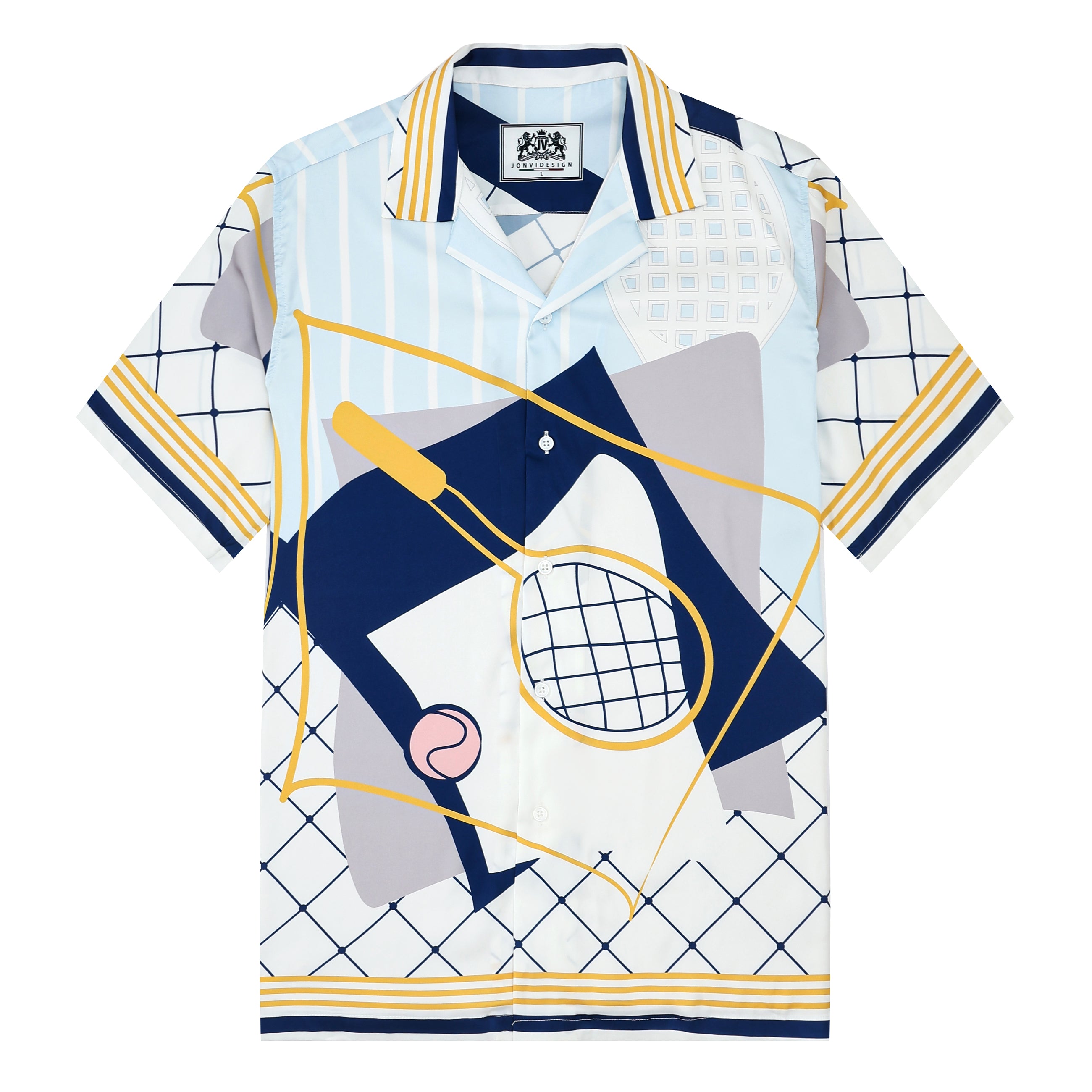 Tennis Court Pattern Short Sleeve Camp Collar Shirt$43.99 USD$69.00 USD