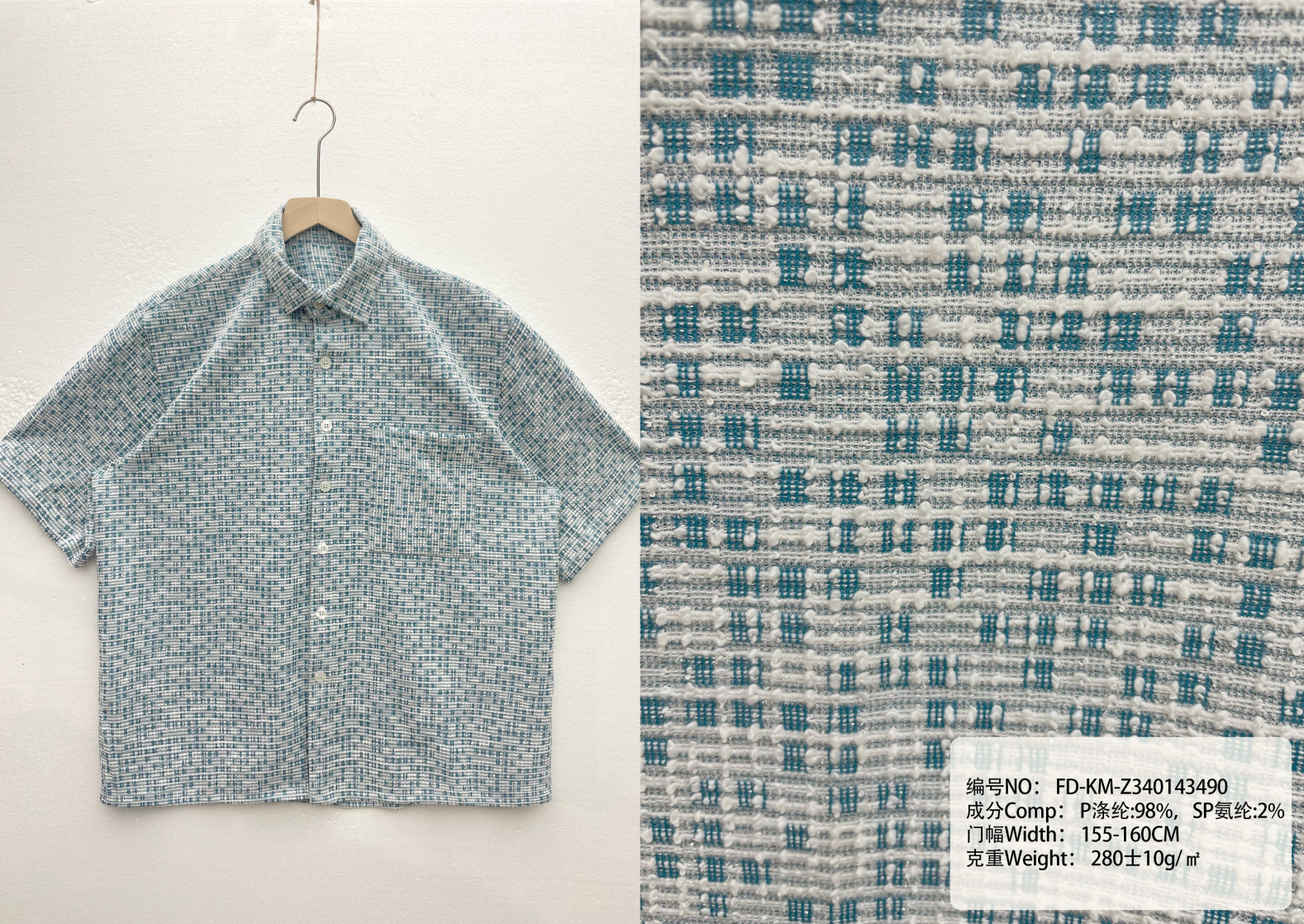 Jacquard fabric features woven-in patterns with depth and sophistication for premium shirts.