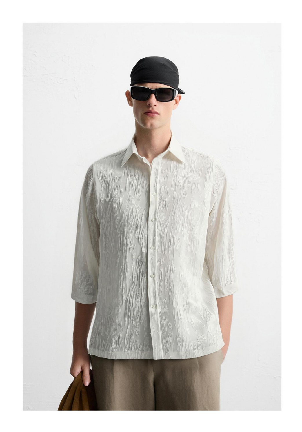 Crepe fabric features a soft, crinkled texture with breathable comfort, ideal for relaxed shirts.